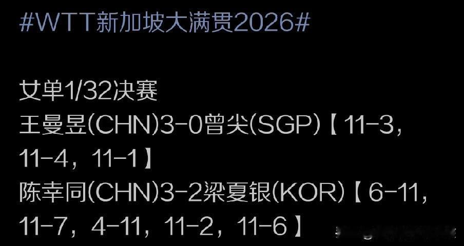 尽管作为世界排名前10行列的顶级球员,而且是国乒女队的五大主力之一,陈幸同在进入职业生涯末期,年龄也来到30岁上下以来,场上的稳定性似乎稍有下滑,打的好的时候所有的世界顶级名将都有可能输在她的拍下。而打的不好的时候,也容易出现一些前两三轮就意外爆冷出局,和外协会顶级高手的胜率也逐步走低的情况。这也让她未来参加奥运会的前景变得越来越渺茫,甚至已经开始产生逐步淡出国乒核心主力层,某些大赛被年轻球员替代的趋势。 不过在陈幸同暂时不选择退役的情况下,我们自然也期待她能在进入职业生涯末期的时候,依然在世界赛场上发光发热,给我们带来精彩。毕竟陈幸同还是一位攻防两端能力都非常突出的国乒女队的尖子球员,大家也还是很希望在世界赛场上看到她的强势表现。 这次WTT新加坡大满贯赛的比赛首轮,可以说陈幸同又一次遭遇险境。那就是在面对来自韩国的名将梁夏银这样的老将时,场上起伏相对比较明显,所以也是战满五局才分胜负,不过打关键分关键球的能力方面,包括整体实力厚度方面,还是陈幸同占据上风,这也确保她在前面打的并不算好的前提下,依然可以通过第五局关键时刻的调整,实现3:2的险胜晋级。避免了一场冷门发生在自己的身上。双方五局的具体比分是6:11,11:7,4:11,11:2和11:6。 而陈幸同在拼下这场比赛胜利之后,也是拿到了个人在WTT赛事当中的第100场胜利,来到一个职业生涯新高度。让我们再次恭喜陈幸同,并期待她在这次新加坡大满贯赛后面的比拼当中,可以表现的更为稳健,并争取走的更远。