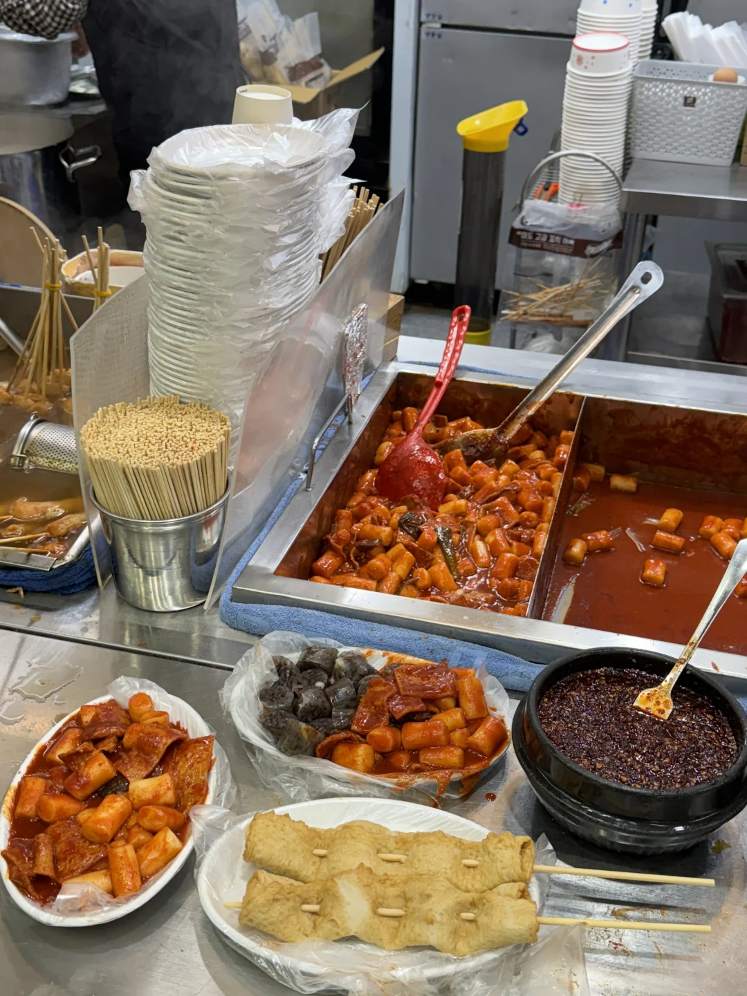 圣水洞🚇2号口出来就是 !好多人围着在吃 鱼饼汤是螃蟹熬出来的 特别的鲜美 年糕也是糯叽叽的!还有辣口和甜口蘸料