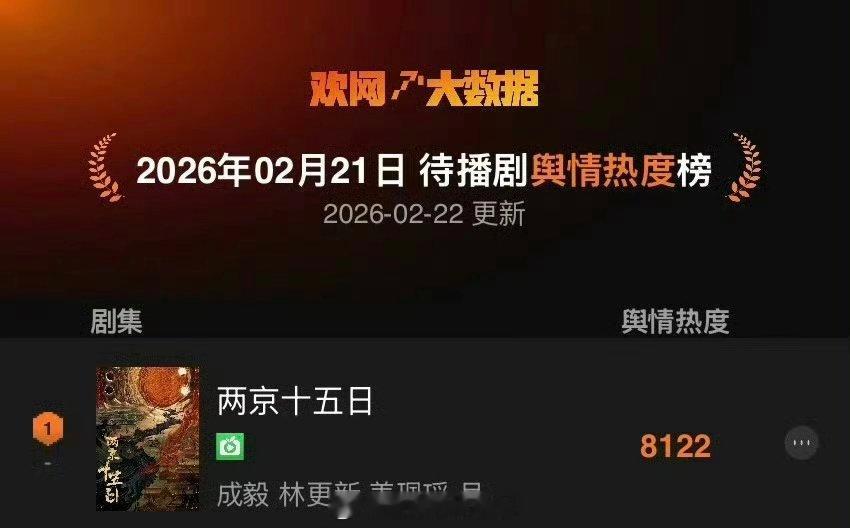 成毅两京十五日欢网待播剧角色、舆情双榜第一