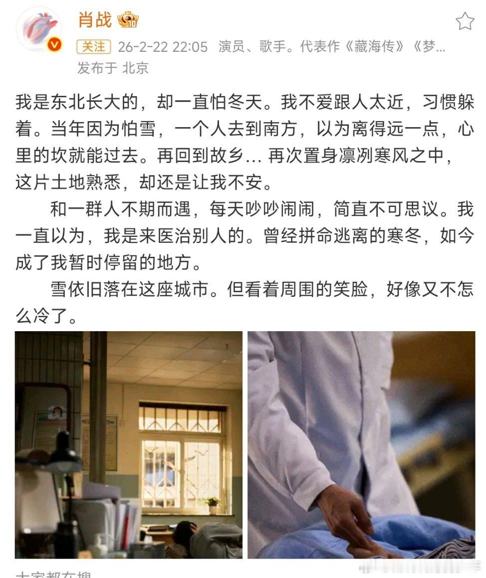肖战的治愈之旅肖战小城良方杀青文来了~好文笔!质朴,真诚,留白文艺工作者要有文化的含金量还在不断上升中 ,他不仅是有文化而且是有丰沛且真挚的感情!肖战的治愈之旅