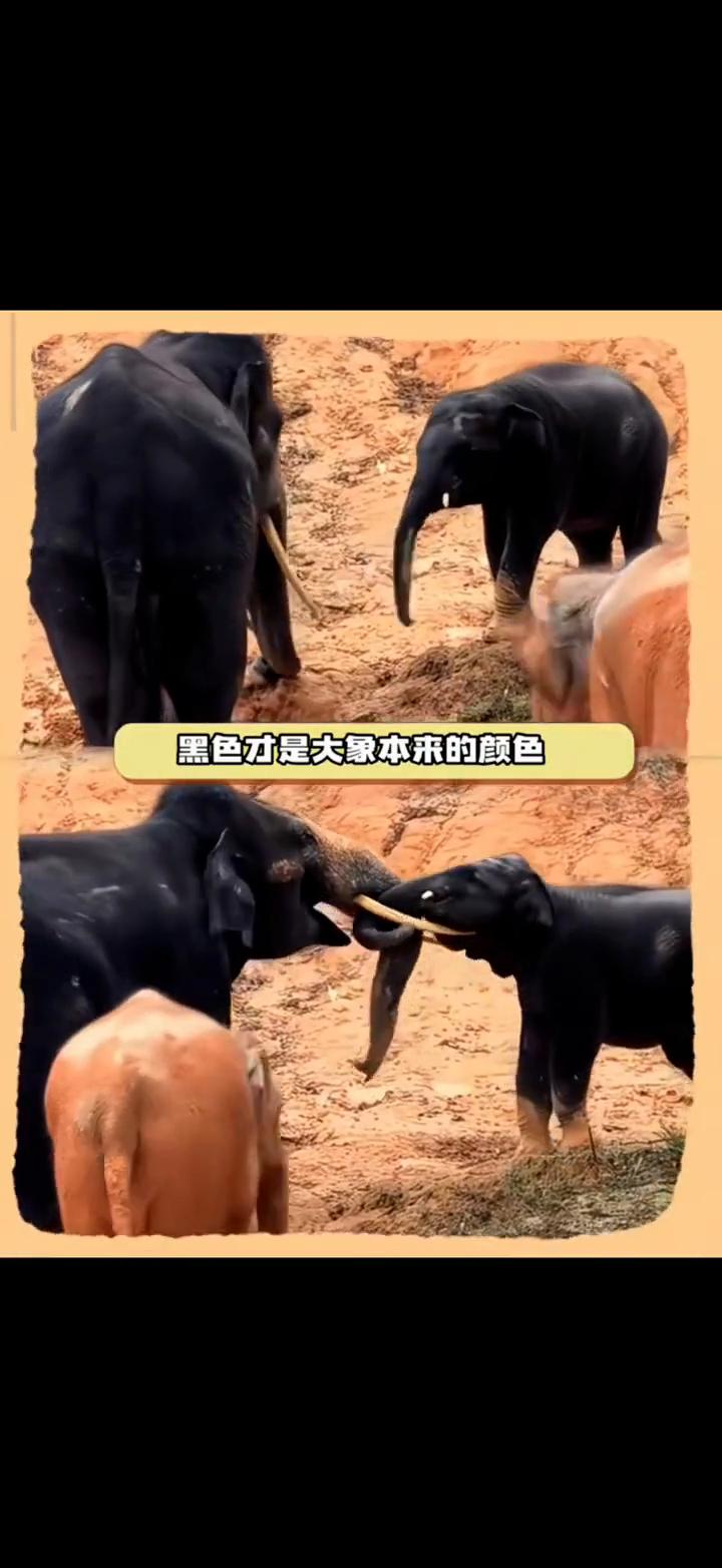 原来黑色才是大象本来的颜色。 毒舌娱乐。 在互联网甚至能看见大象的素颜。刷到有网友分享长隆欢乐世界野生大象的视频,居然有一只是黑色的。底下有人科普黑色才是大象本来的颜色。平常见到的大象都是灰色或者有点浅棕色的,但这并不是大象本来的肤色。之所以呈现这个颜色是因为大象的皮肤很脆弱,所以得无时无刻用泥巴裹着皮肤起到保护作用。 大象会在自己的身上裹上一层泥,不仅可以防晒还能防蚊虫叮咬。一般下水洗澡上岸后都会第一时间裹泥巴护肤。见到的大象的肤色取决于泥巴的颜色,有些泥巴干了就是黄色的,有些是灰色的。