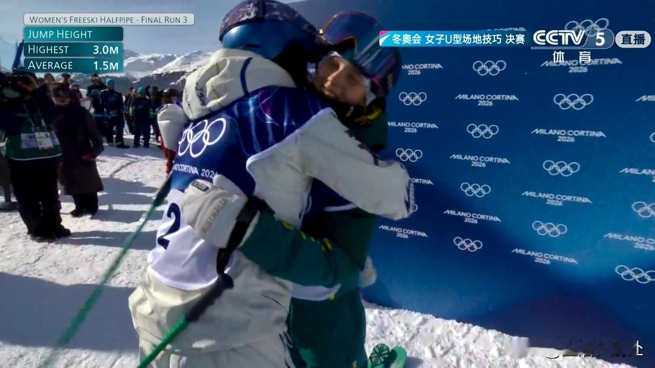 与妈妈拥抱,与崇拜者拥抱,与队友拥抱,与竞争对手拥抱……四个拥抱,凸显谷爱凌不仅滑得漂亮,并且滑出了精神风貌。 在米兰-科尔蒂纳冬奥会,自由式滑雪女子U型场地技巧决赛中,当谷爱凌完成最后一跳后,她先后与四个人拥抱。 第一位是自己妈妈谷燕。一直以来,妈妈都是她最有力的支持者。谷爱凌说,由于去年12月份的一次比赛因为滑板打蜡的原因,导致摔倒。这次在预赛中,谷爱凌带了七副滑板,妈妈也一改常态,在出发点检查。当谷爱凌完赛后,第一时间找到妈妈,母女俩人激情拥抱。 第二位是一位崇拜者,来自澳大利亚的选手布朗。这位只有16岁的女孩,把谷爱凌当成偶像来学习。虽然今天决赛没有发挥好,只获得了第5名。但当布朗完赛后,谷爱凌主动走过来与她拥抱鼓励,这让布朗喜出望外。 第三位是队友李方慧。李方慧在比赛中表现出大将风采,每一跳都发挥都很好,而且一跳比一跳好。作为队友,谷爱凌也在现场见证了李方慧的成长。当李方慧完赛后,谷爱凌也是第一个上前与她拥抱祝福。两位中国姑娘,顶峰这一抱让解说员都崩出了一句:中国女人不是天生好强,而是生来就强。 第四位是竞争对手阿特金,来自英国的选手。阿特金在最后一跳也发挥出色,获得第三。在赛后,谷爱凌也是第一时间与她拥抱祝贺。 下图①:谷爱凌与妈妈拥抱。 图②:谷爱凌与自己的崇拜者布朗拥抱。 图③:谷爱凌与队友李方慧拥抱。 图④:谷爱凌与竞争对手阿特金拥抱。