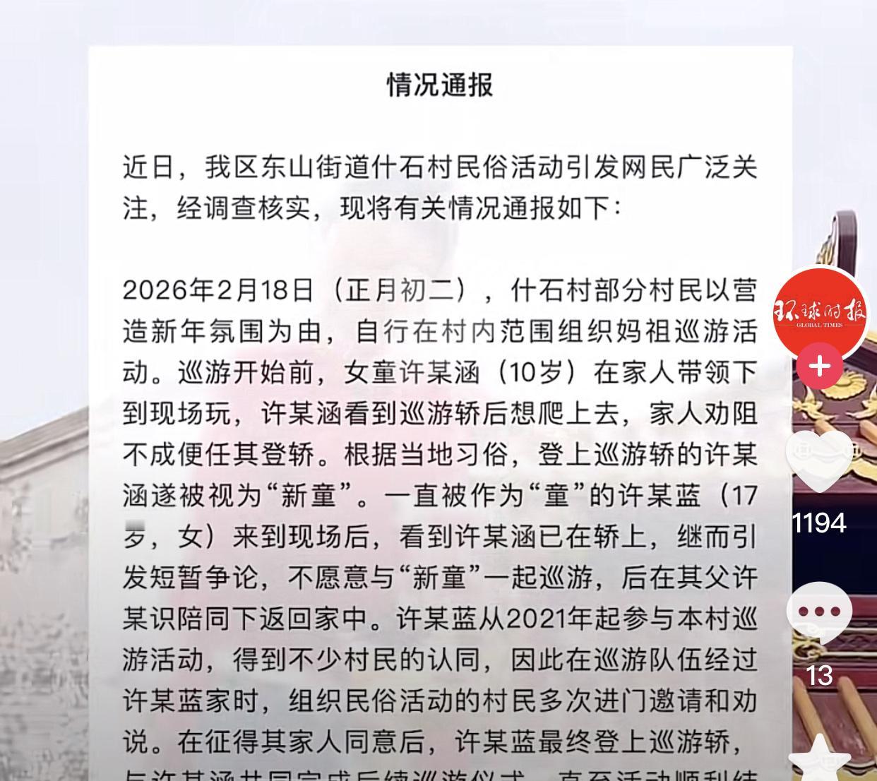 湛江什石村妈祖巡游“换童”事件,当事人许姓老板道歉了,说是自家孩子不懂事自行爬到轿子上的,然后众人就将他当作今年妈祖巡游的“新童”! 其他的不知道,因不在现场,但是说这种民俗活动不掷圣杯就直接当“新童”,不管你怎么解释都没人信。 为什么“新童”站在轿上就抬不动呢,人家推之前要抛圣杯,抛到圣杯才能推动,但新童抛了八次圣杯,轿子依旧丝纹不动,而当了8年“童”的女孩子抛一次,轿子就轻松抬起。 所以抛不到圣杯就前进不了懂没有?往常这名女孩童更让人信服,不告知别人,突然换一个,这就不能服众,轿子自然抬不起。只有众人拾柴火焰高,才是妈祖巡游真正的意义。