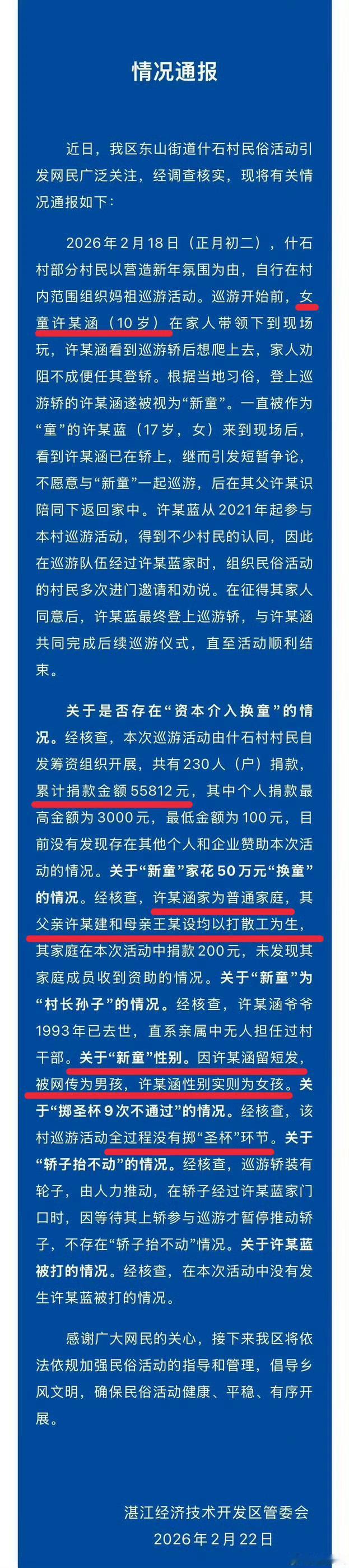 从“50万换童”到“神明震怒”,谣言传得满天飞。但看了官方通报才知道,真相其实特别简单:就是一个10岁的短发小姑娘(被误认成男孩)好奇爬了轿子,原定的姐姐闹了点小情绪,最后两人一起开开心心完成了巡游。