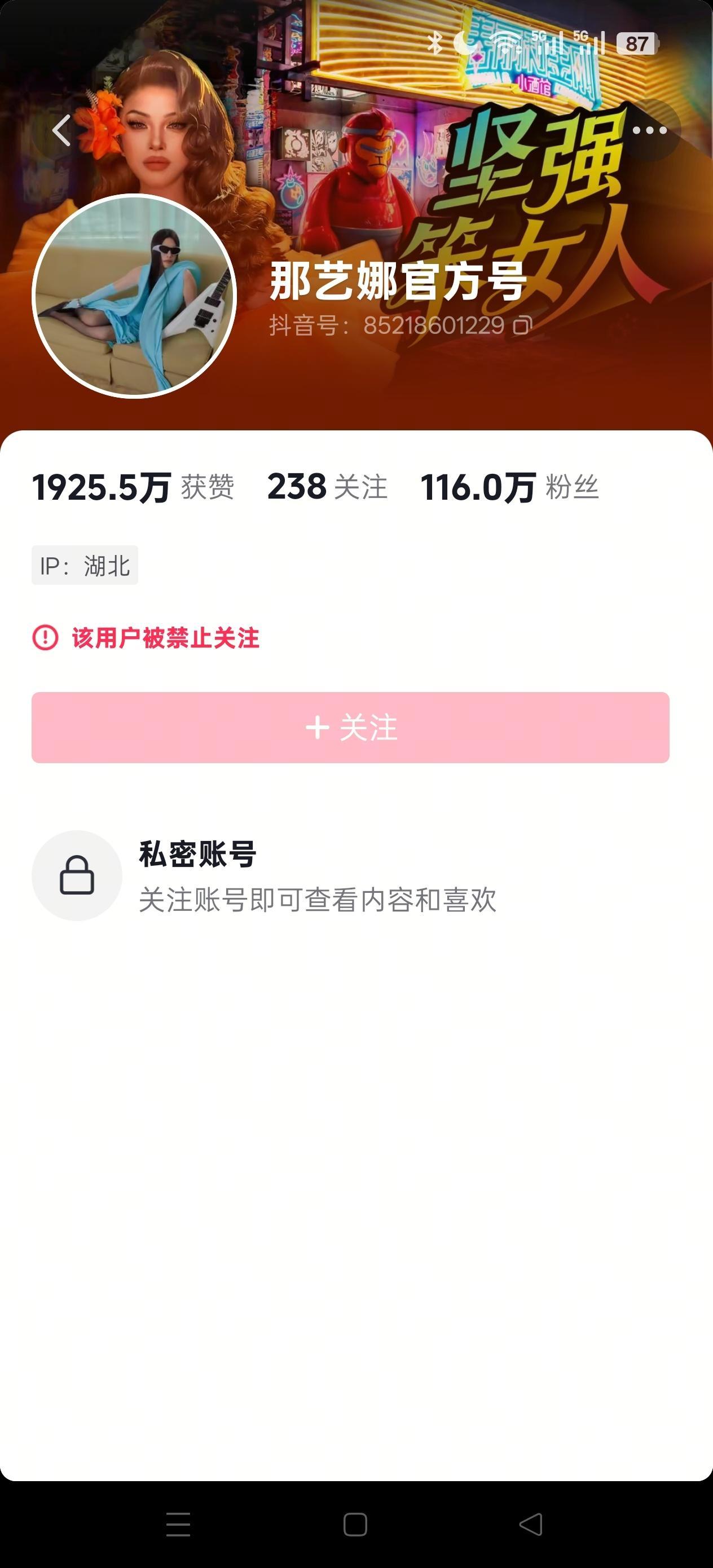 那艺娜账号被禁止关注