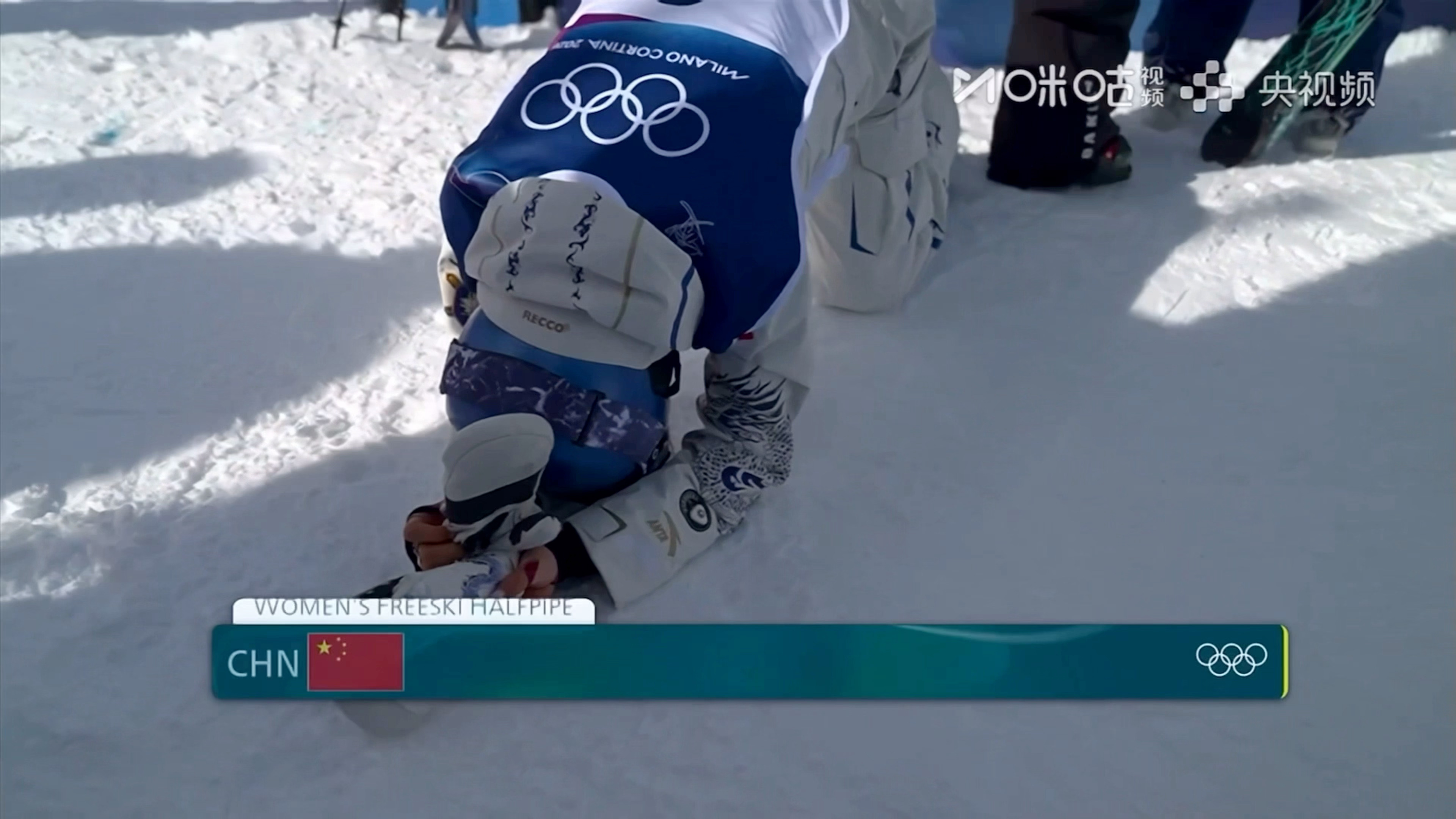 【#刘佳宇摔倒受伤担架抬出场#】2月11日米兰冬奥会单板滑雪女子U型场地技巧预赛