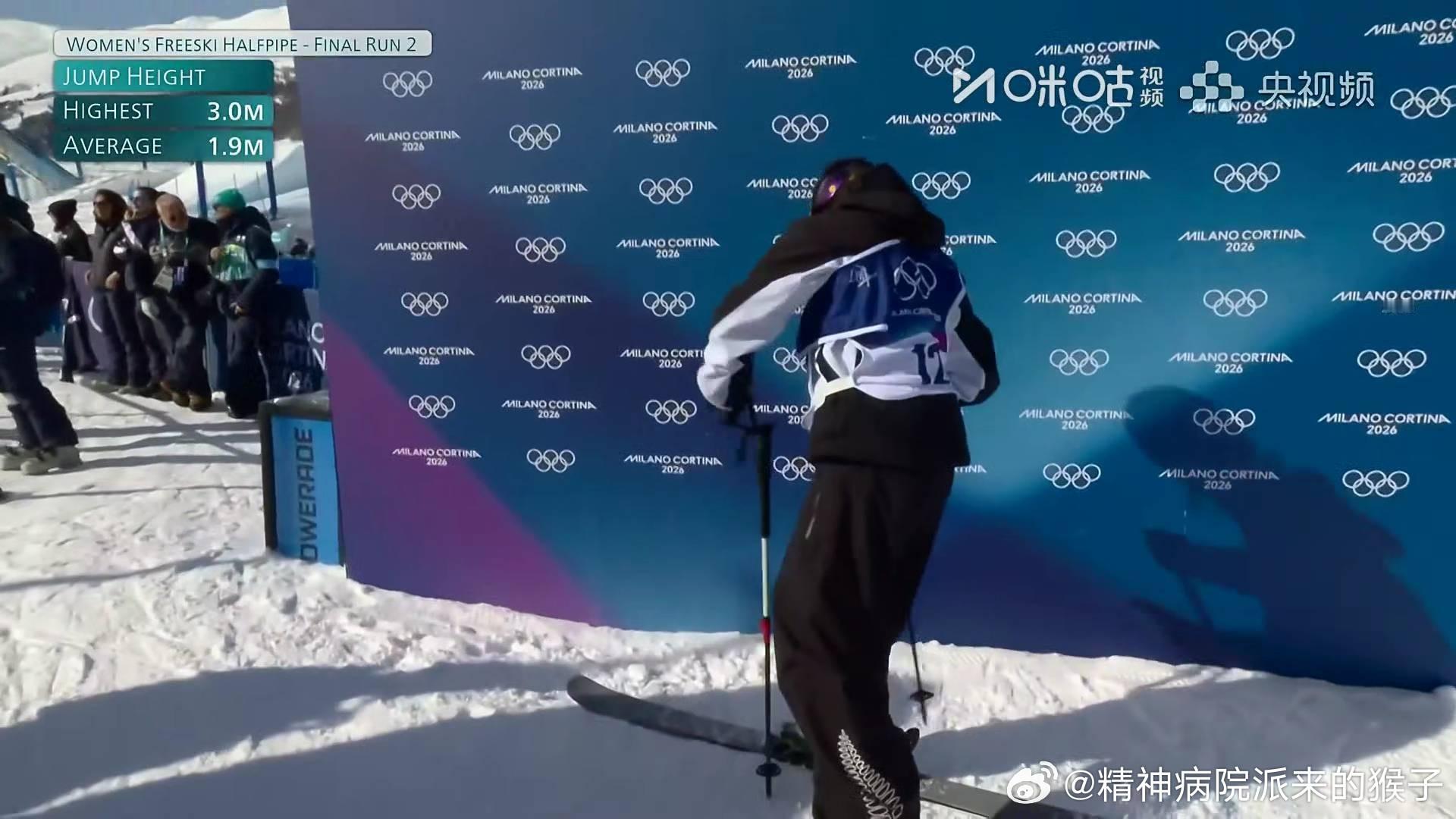 女子U型场地决赛谷爱凌第二滑94.00分 新西兰选手的手机掉了滑完一摸兜手机没了,后边工作人员帮忙捡过来了