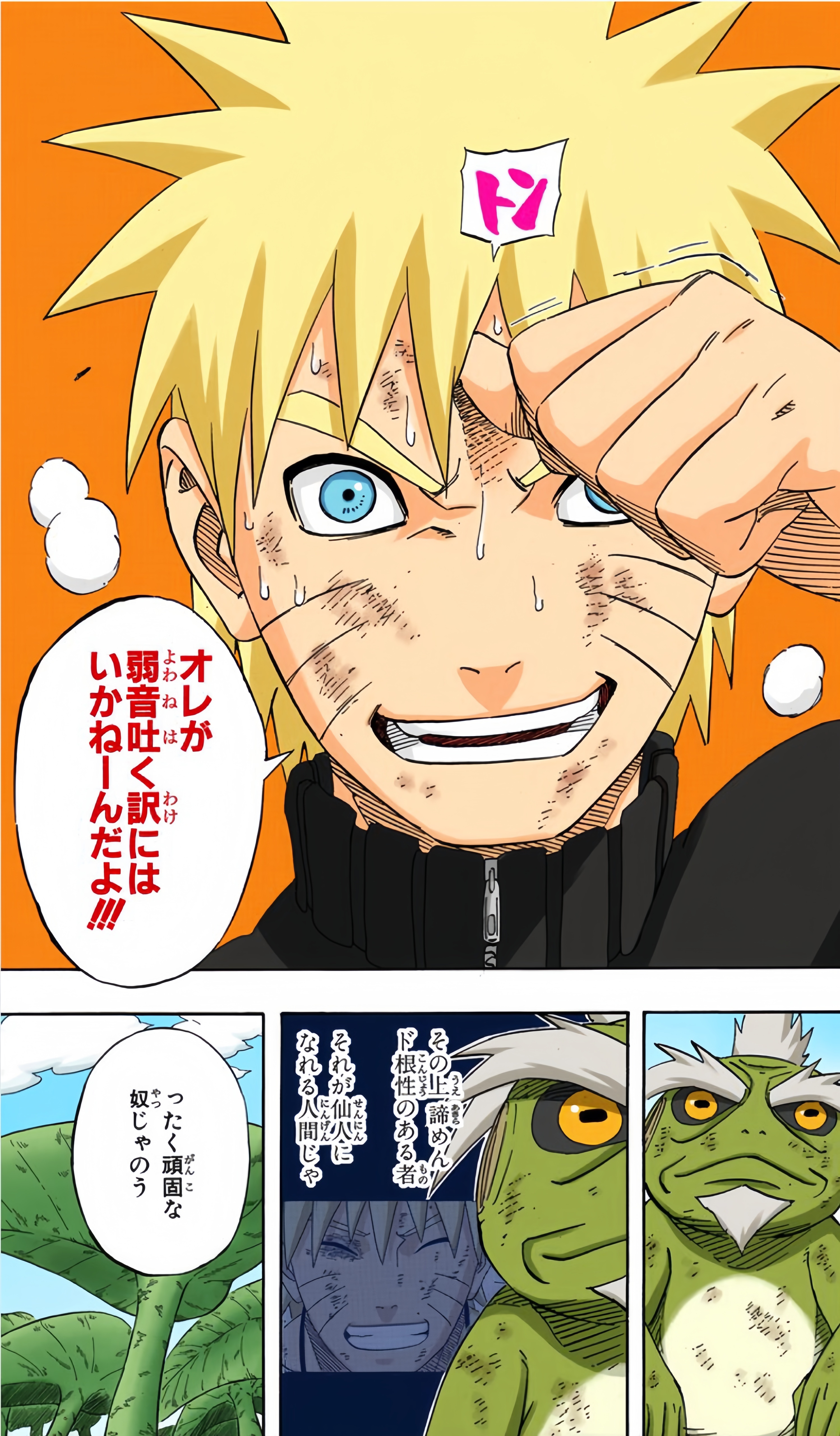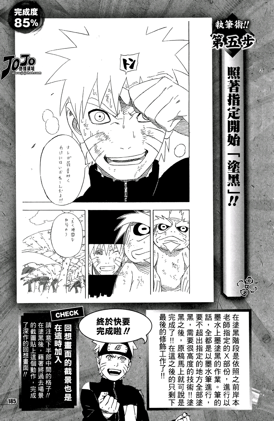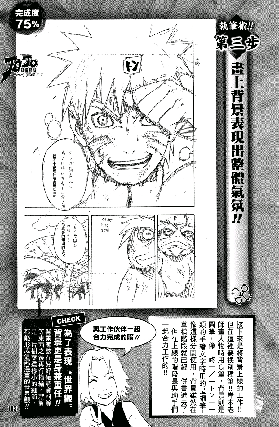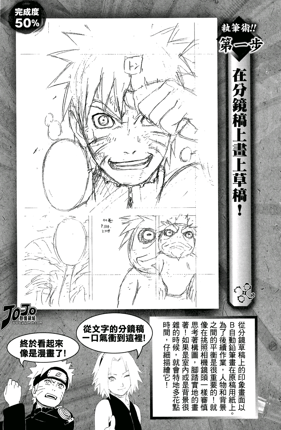 来看看岸本是如何一步一步把帅气的鸣人画岀来的吧(图8是彩色版)收录在公式书『火影