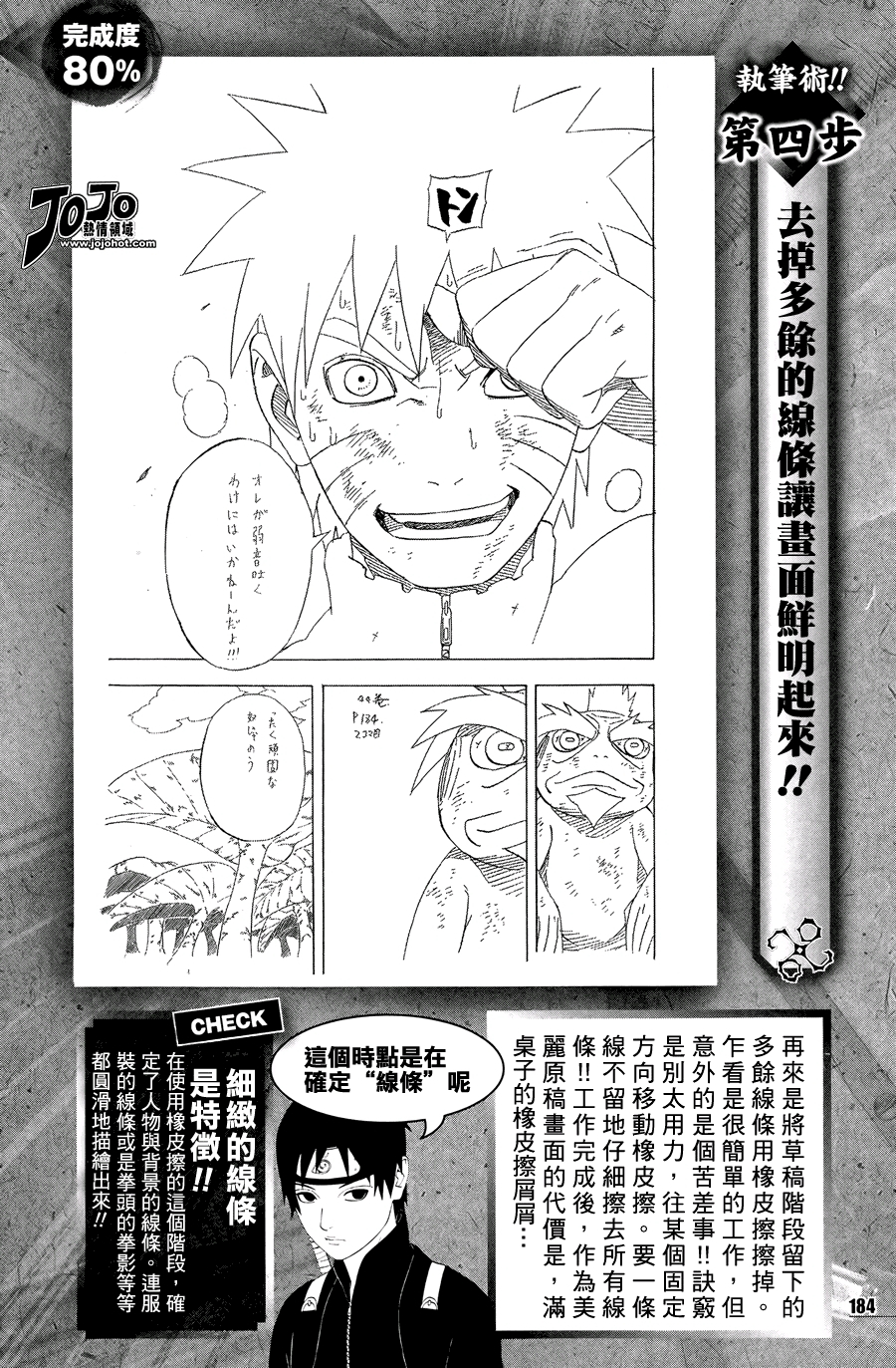 来看看岸本是如何一步一步把帅气的鸣人画岀来的吧(图8是彩色版)