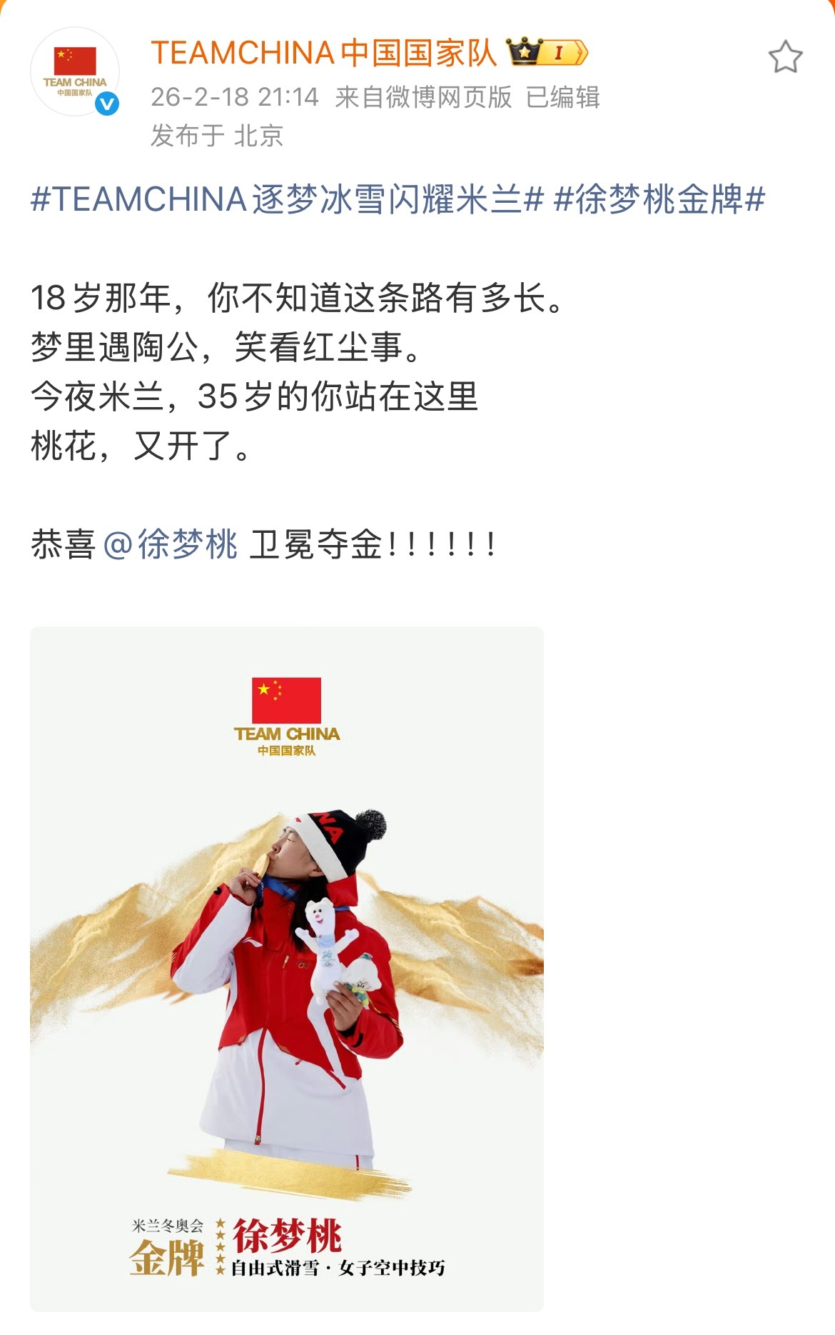 五金收官🥇!!!米兰冬奥会五金收官