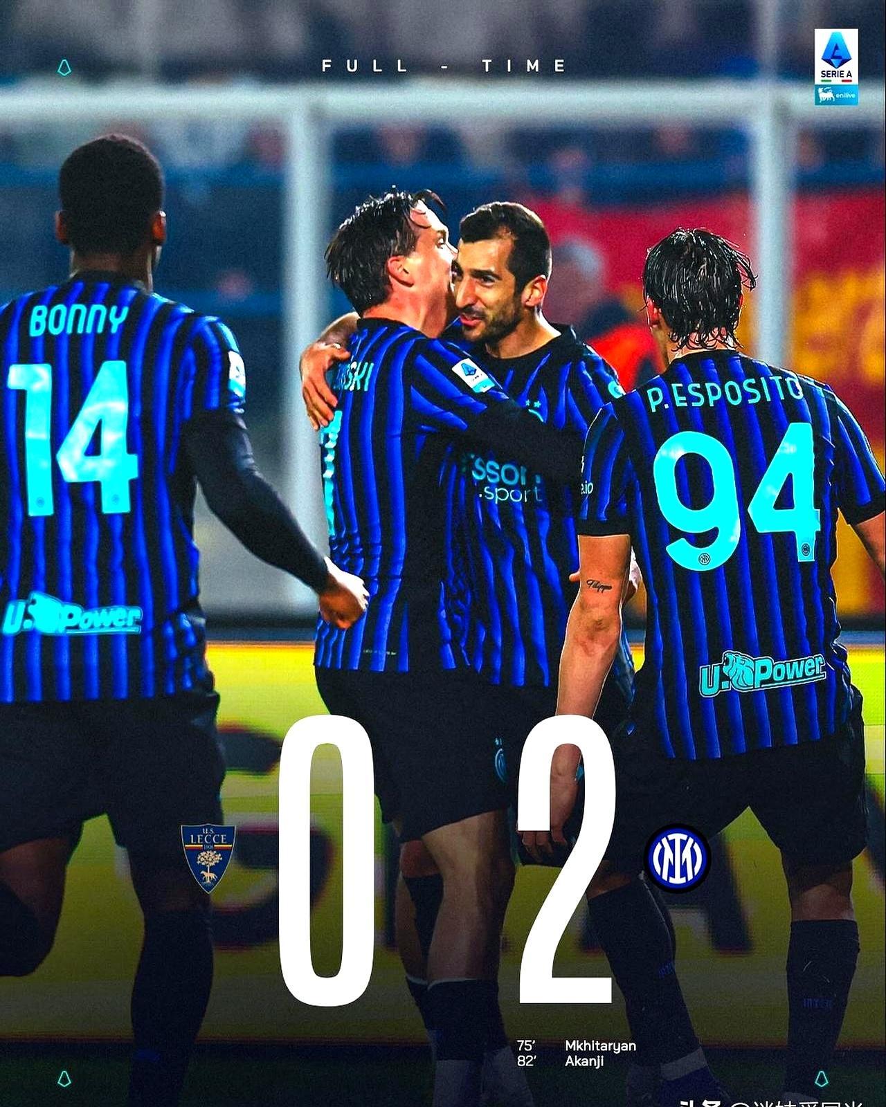 AC米兰球迷今晚别睡了。国米半场闷平,7分钟却直接杀死比赛,甩开10分。 你以为国米要翻车?上半场对着莱切铁桶阵,球就是传不进去,前锋们急得直挠头。75分钟了,比分牌还是0-0,死气沉沉。 然后,迪马尔科站了出来。一脚角球,姆希塔良门前抢点捅进去。7分钟后,又是他,同样的位置,同样一脚弧线,阿坎吉一头砸进网窝。 真正的冠军相,不是看你顺风球踢得多漂亮,而是看你70分钟打不开局面时,能不能一招致命。