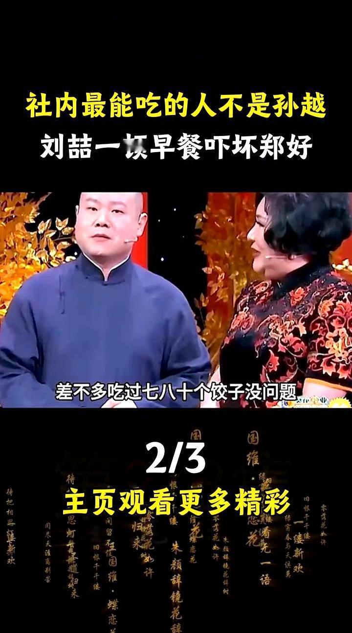 都以为德云社最能吃的是孙越,你错了。有人一顿早餐干掉12盘菜,搭档郑好当场吓得筷子都掉了。 这人就是刘喆。郑好说跟他巡演,早上看他一人扫光12盘。还有张金山,演完先啃只烧鸡,到车站再吸溜碗拉面,上了火车还能撕开一根红肠。 你再看岳云鹏,师娘亲口盖章,80个饺子是起步价。孙越更别提,俩全家桶下肚,还得再塞个汉堡溜溜缝,把胃里的边边角角填满。 台上说的不是段子,是人情世故;台下吃的不是饭,是烟火人生。