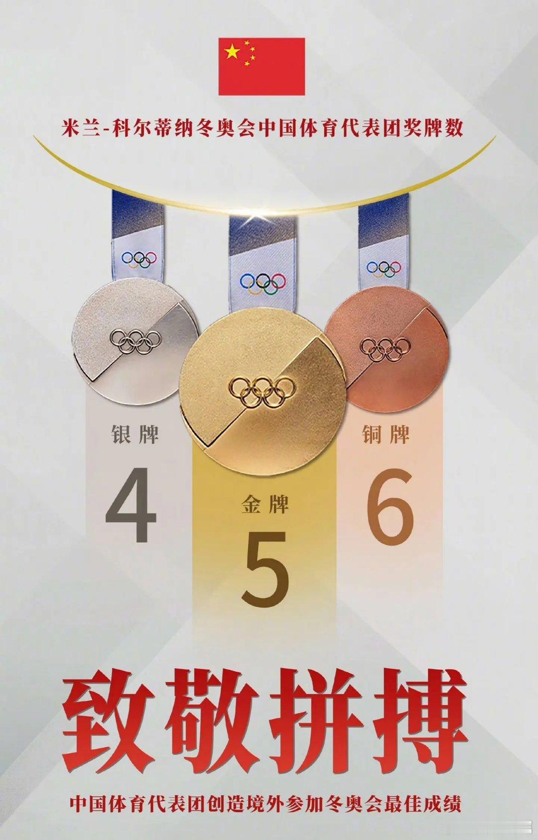 中国队创冬奥境外参赛最好成绩中国队斩获5金4银6铜历史时刻!中国代表团在米兰冬奥会拿下5金4银6铜,共15枚奖牌,创造境外参赛历史最佳战绩!