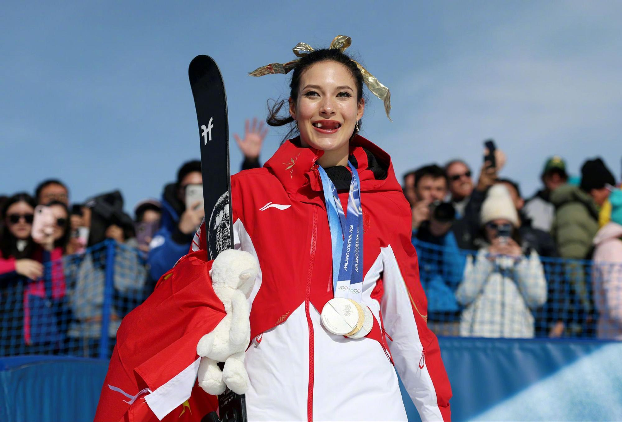 谷爱凌金牌🏅 米兰冬奥会自由式滑雪女子U型场地决赛,谷爱凌凭借第三滑94.75分卫冕金牌!收获她本届冬奥会首金和第三枚奖牌,以(1金2银)的漂亮战绩完美收官!谷爱凌米兰1金2银 谷爱凌第三滑94.75分