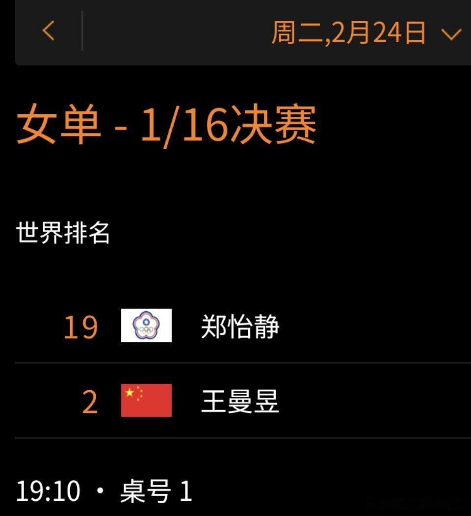 WTT新加坡大满贯2026新加坡大满贯女单1/16决赛2月24号 19:10,T1王曼昱vs郑怡静 王曼昱加油健康完赛!