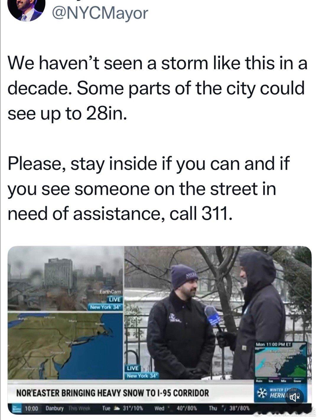 纽约市周一有超大暴风雪,十年来最严重,某些地区降雪量可达0.7米