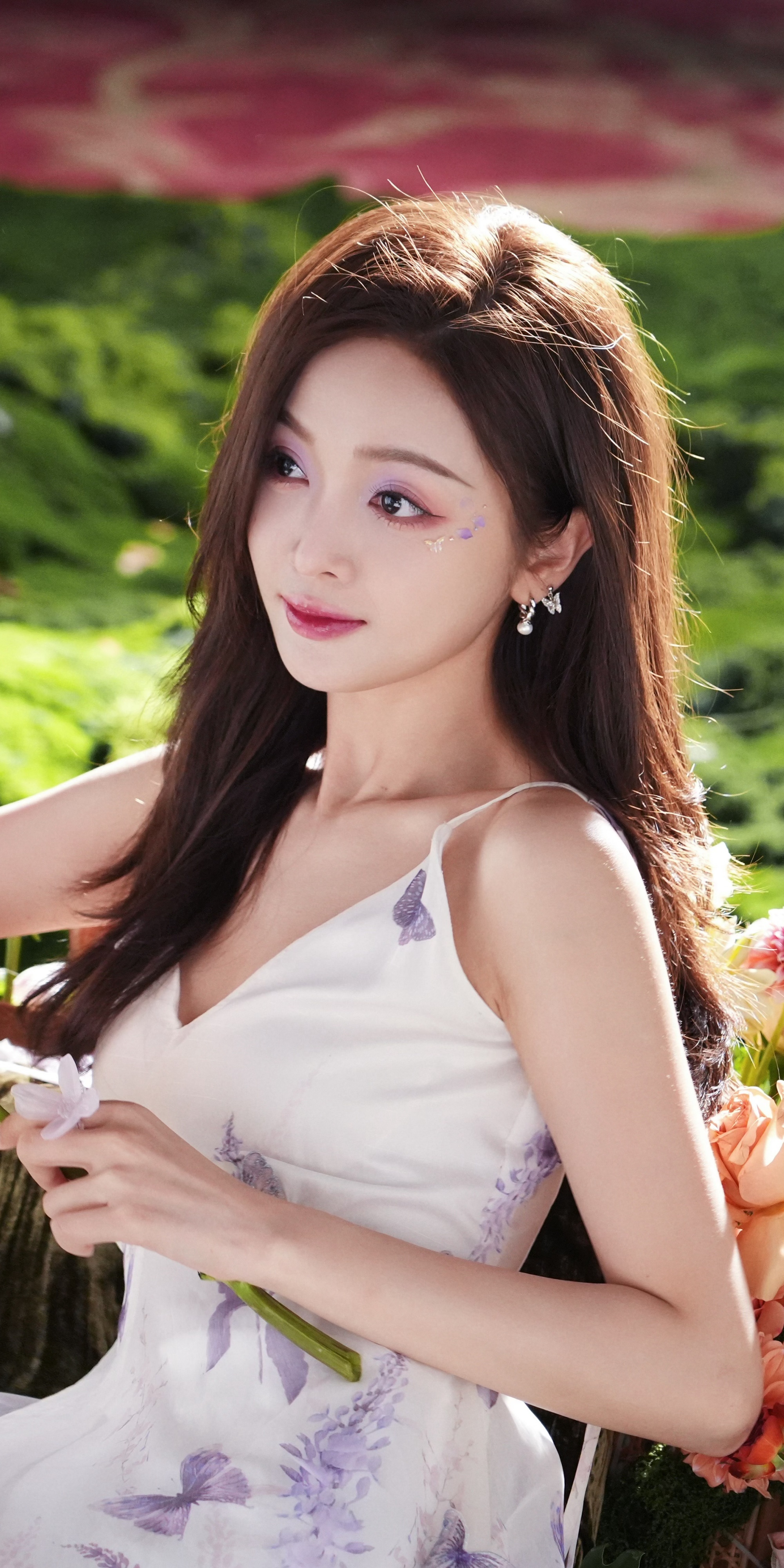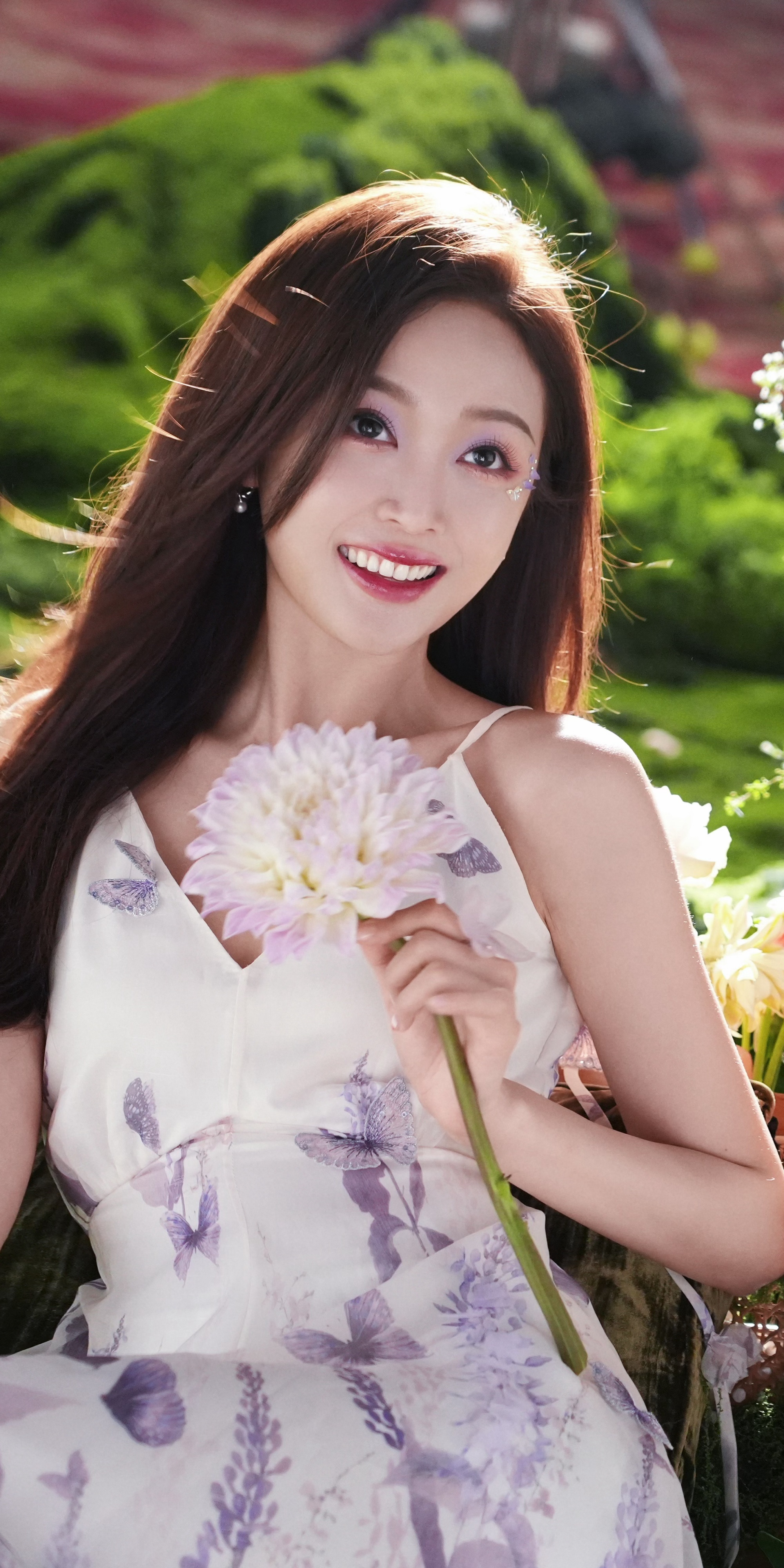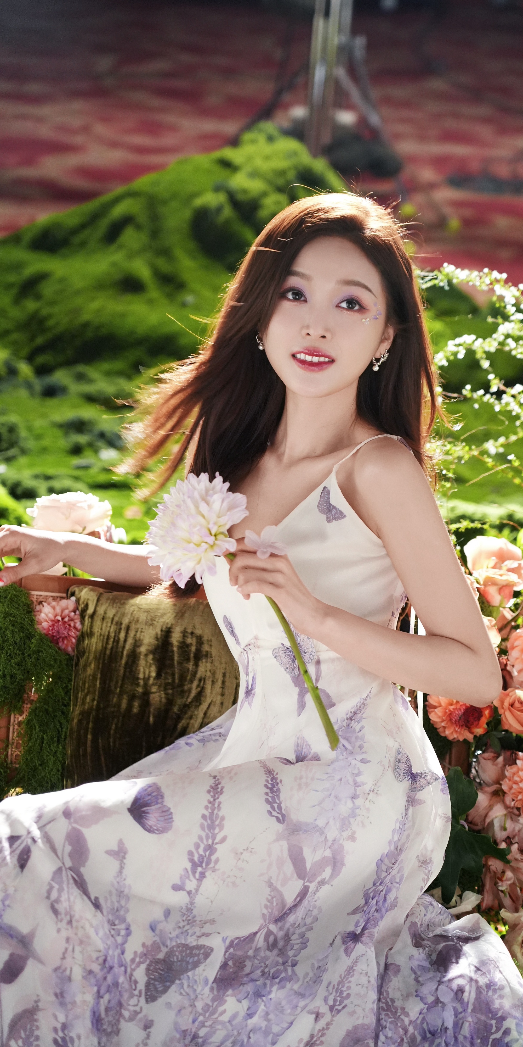 吴宣仪心动壁纸:紫蝶逐花的少女气息。吴宣仪