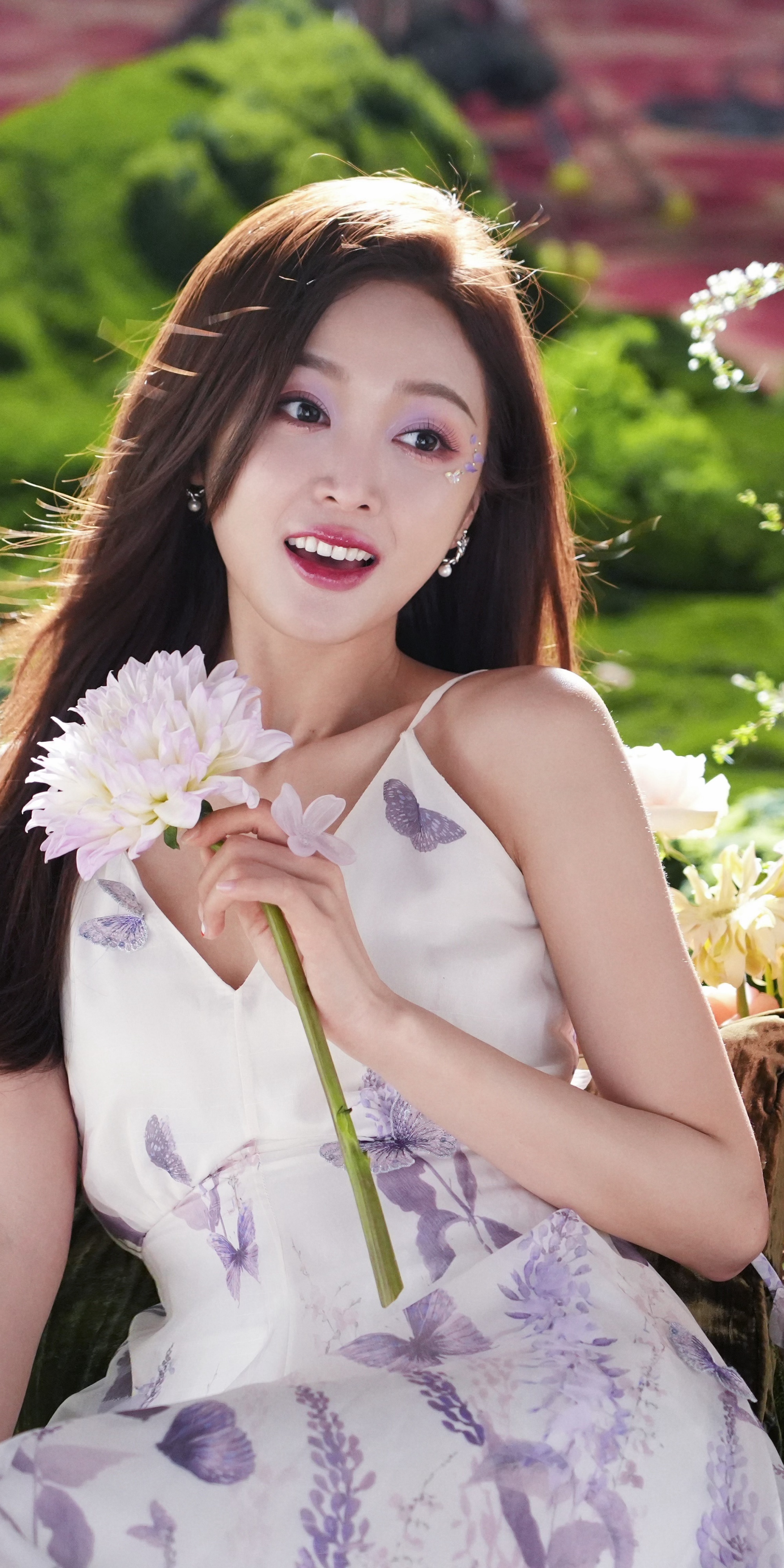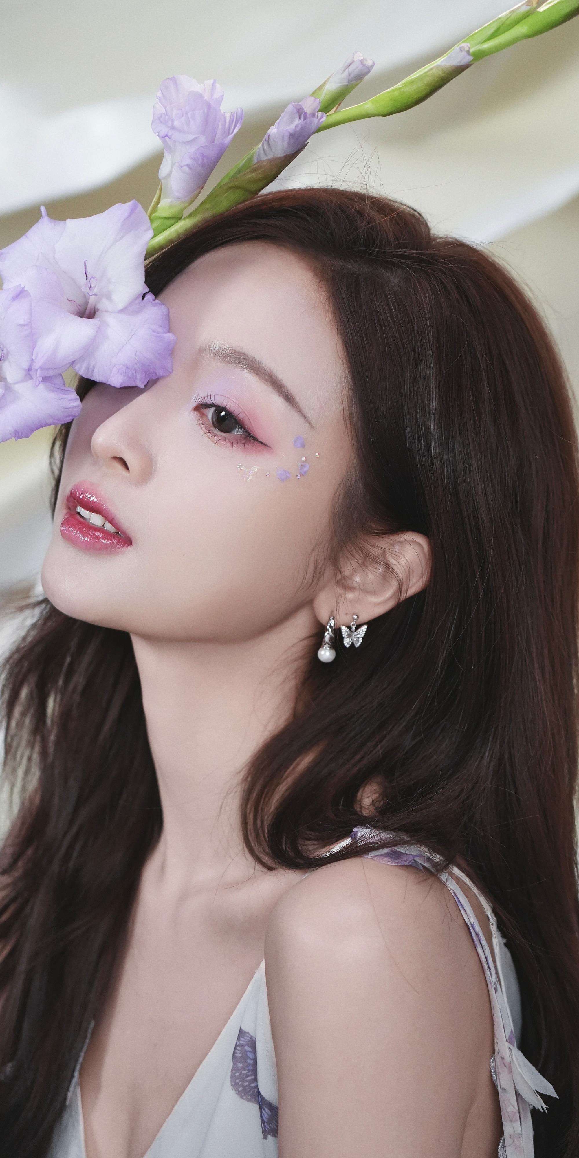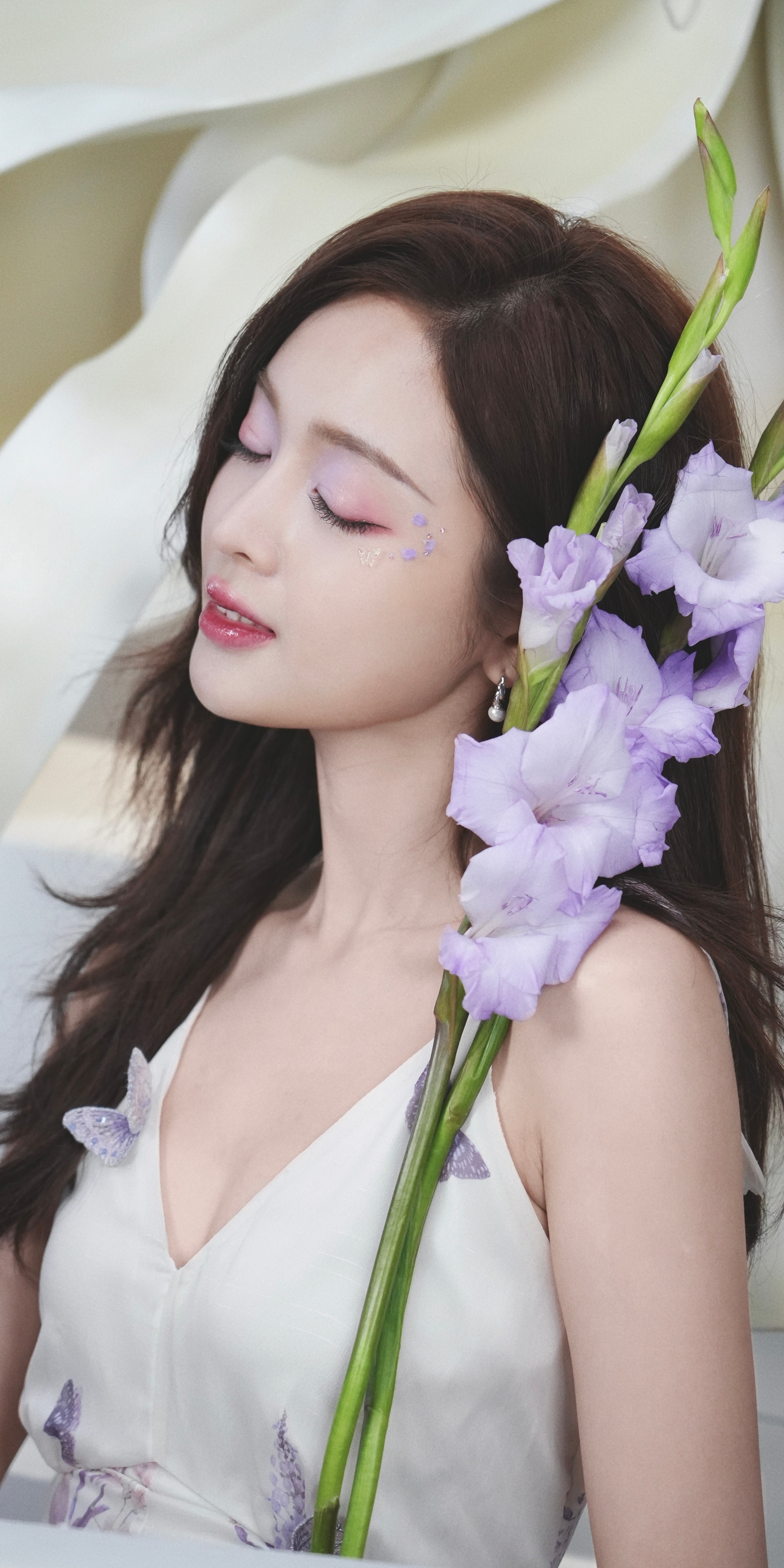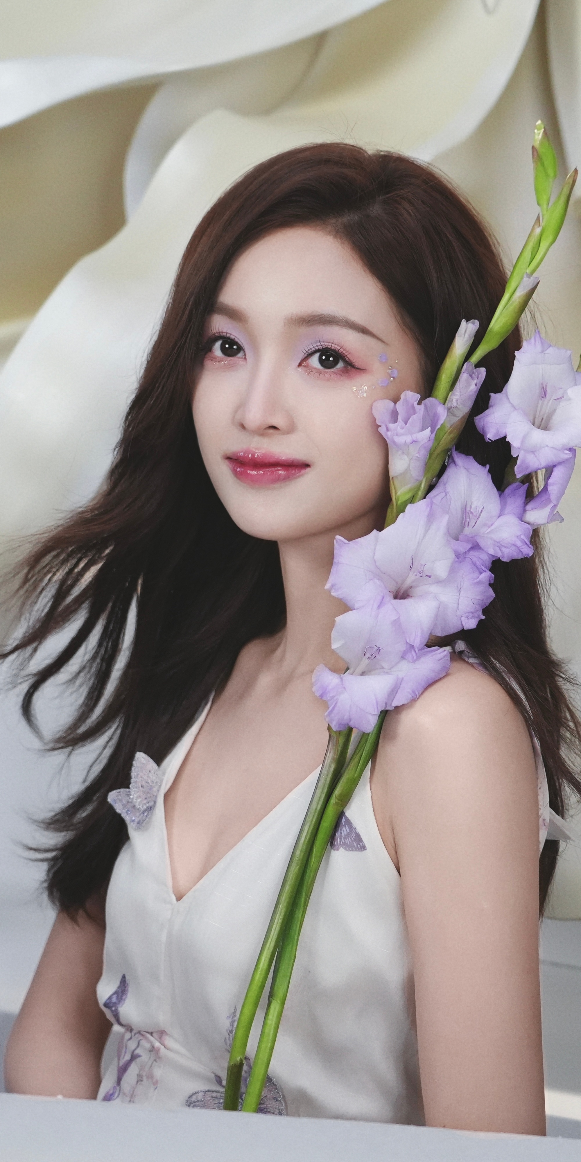吴宣仪心动壁纸:紫蝶逐花的少女气息。吴宣仪