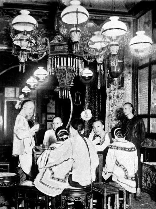 这张照片拍摄于清末的广州珠江,一艘豪华“花船”(又称紫洞艇)内,几位留着长辫的富