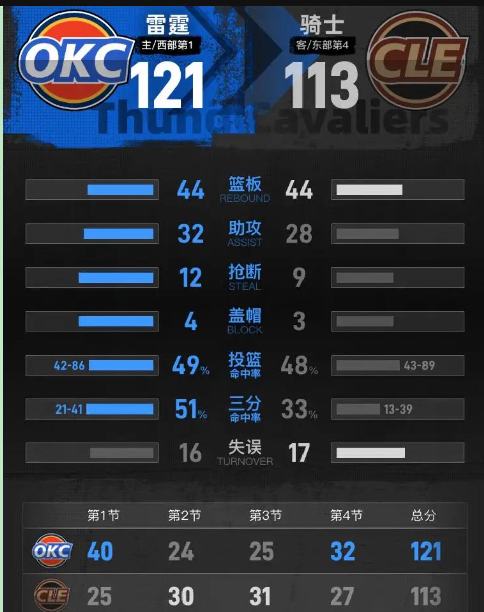 我们都觉得老将稳,直到米切尔被一个19岁小孩晃得找不着北。 骑士今晚像极了我爸那台旧诺基亚——信号满格,点开微信却转圈三分钟。华莱士10次助攻把防线撕成快递盒,哈登追他追得像赶公交,眼看车走了,还得假装没喘。第三节反超那阵,我以为要翻盘。结果米切尔邦邦两铁,听得人牙酸。阿伦13个篮板听着唬人,防挡拆却跟老大爷遛弯似的,霍姆格伦抬手三分,他连手都懒得伸。 离谱的是比克斯塔夫。韦德打35分钟拿0分,这不是诈骗是啥?泰森和汤姆林上来就是凑人头,进攻纯四打五。反观雷霆,替补上来疯跑,杰林- Williams那两个前场板,直接给骑士盖棺材。 雷霆根本没有老大。乔投三分像训练,华莱士传球像开天眼,霍姆格伦盖帽像扇蚊子。五个人都在流动,球不粘手。骑士呢?哈登运完米切尔运,俩人助攻才14次,球黏得像化了的奶糖。 说白了,骑士还在啃老,雷霆已经在造新船。切特第四记封盖后,骑士球员眼里没火,只有下班的疲惫。这眼神我太熟了——就像明知道项目要黄,还得假装改PPT。 篮球从不信资历,只信谁跑得快。今晚的雷霆告诉所有人:别等风来,要成为风。哈登20+9米切尔20+7+5 乔22分雷霆终结骑士七连胜