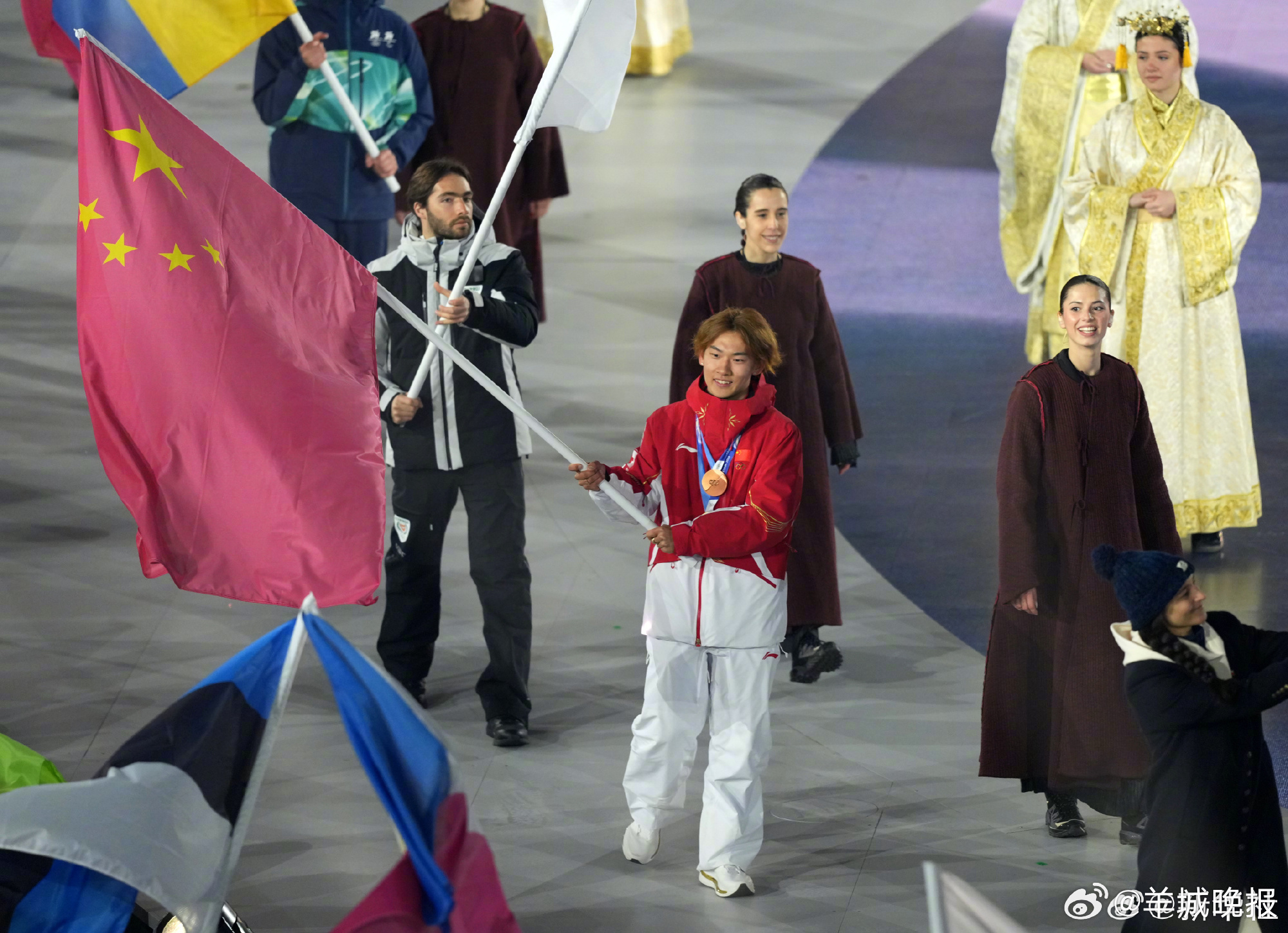 【2026米兰冬奥会闭幕式,#苏翊鸣手持五星红旗入场#】2026年米兰-科尔蒂纳冬奥会闭幕式在意大利维罗纳奥林匹克竞技场举行,担任中国代表团旗手亮相!(新华社)