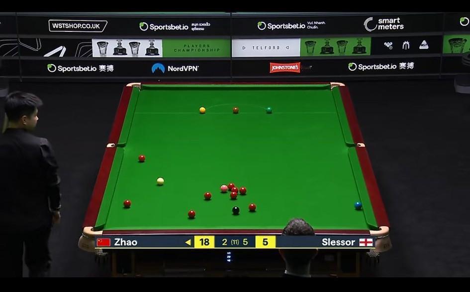 赵心童能夺冠一切都得从这个蓝球晕进说起……激进打法的要点就是进攻吧! 首轮在2-5落后的绝境之下,赵心童第八局率先上手,蓝球打上面右边底袋未进,幸运的是晕进了下面右边底袋。 赵心童幸运单杆破百拿下第八局,此后就像开挂一样,连胜四局逆转。 第一轮:6-5 斯莱瑟 1/4决赛:6-3 墨菲 半决赛:6-5 艾伦 决赛:10-7 希金斯