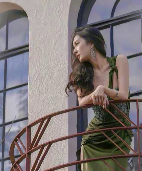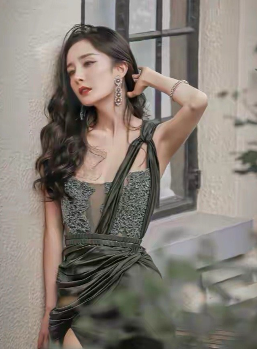 杨幂一袭橄榄绿长裙封神!复古花园大片美到失语