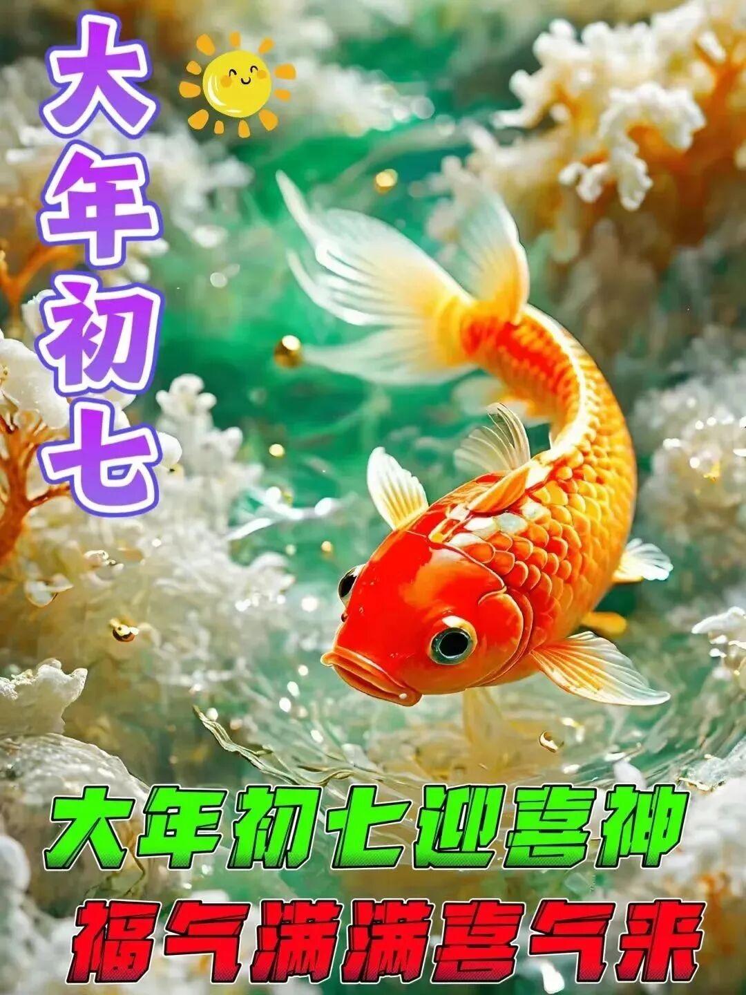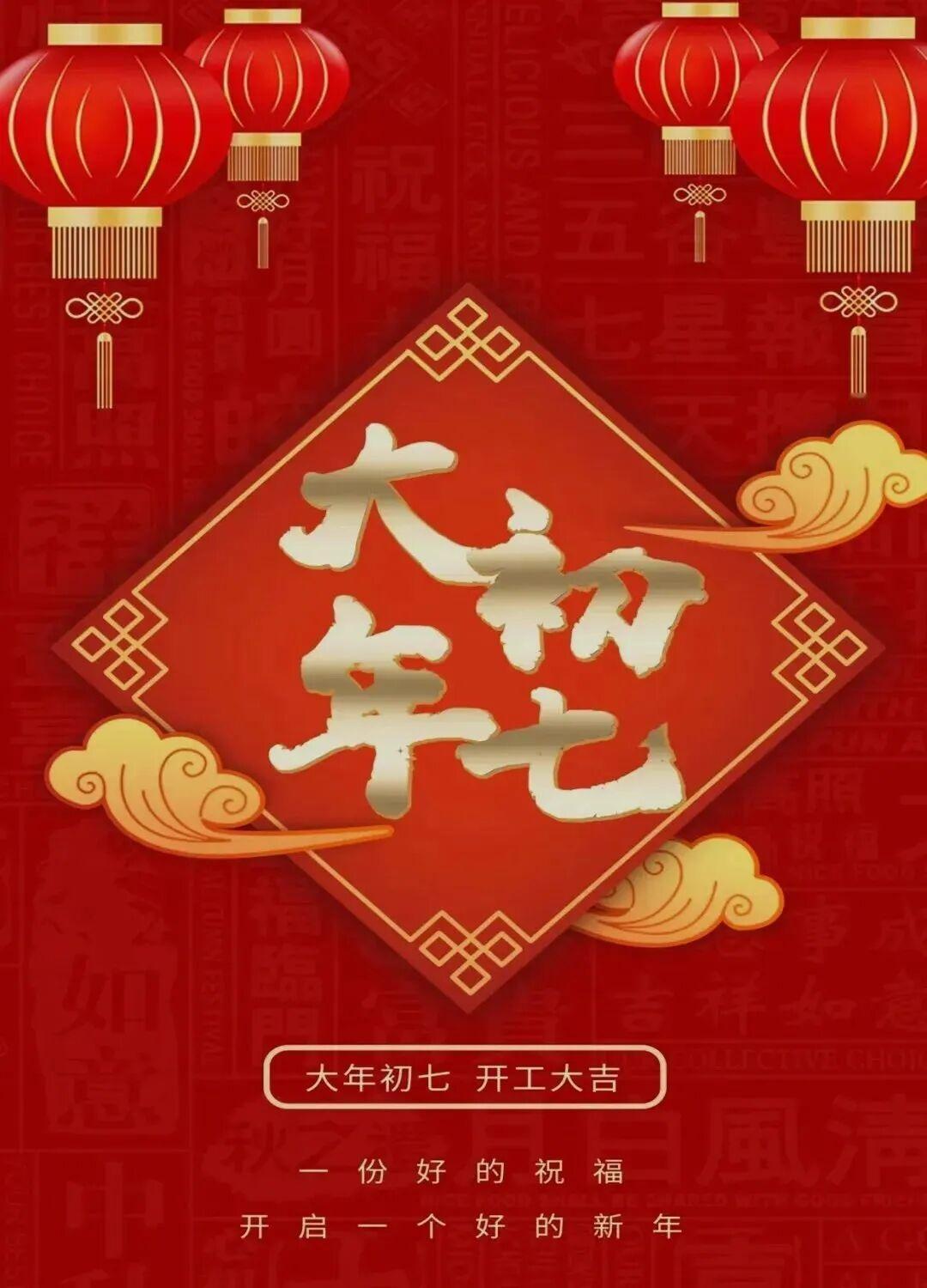 正月初七人日到 愿你时时都欢喜 天天吉星高高照 时时好运相伴随 烦恼忧愁全部除 事业有成走红运 快乐健康分秒秒 大年初七送你七个福 一送幸福,日子美滿享富贵 二送事业福,生职加薪有前途 三送爰情福,恩恩爱爱到白头 四送人脉福,朋友成群都靠谱 五送和谐福,家庭和睦,人幸福 六送幸运福,诸事顺利合心意 七送健康福,身体健康壮如牛