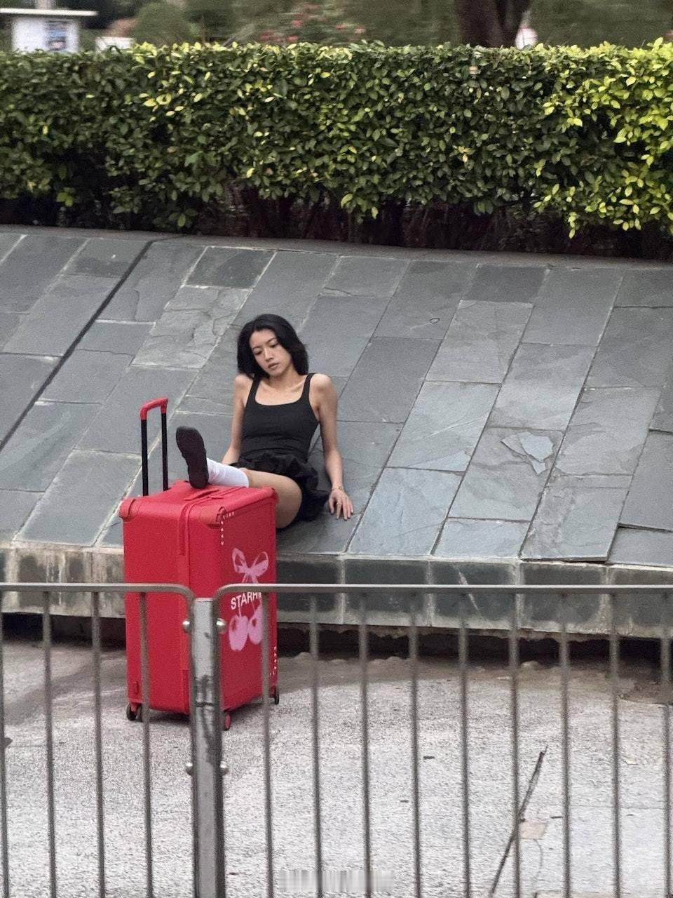 視后驚現街頭打扮性感將美腿放上行李喼 網民怕認錯指舉動似外傭