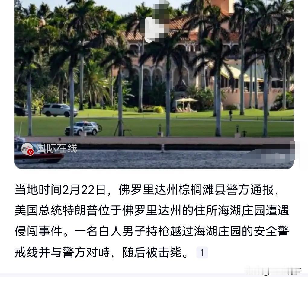 这真的是作死,人不能吃得太饱。 当地时间2月22日,一名白人男子既然持枪闯入特朗普的住所,并与警方对峙,那就非常的危险了。 男子最终的结果就是被击毙。 就是何苦呢?怎么这么不珍惜生命,为什么要和警方对峙呢?这真的是在找死。