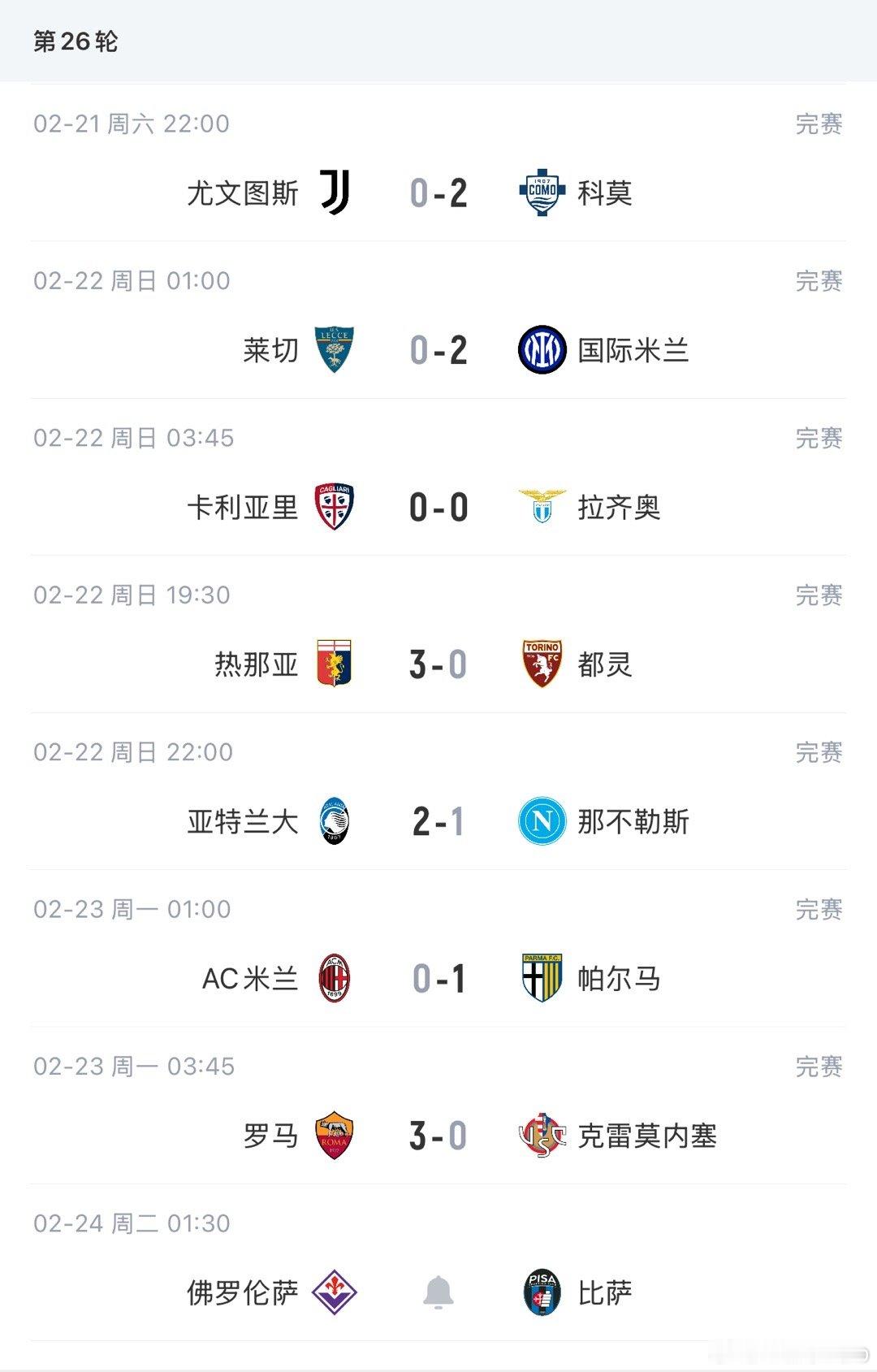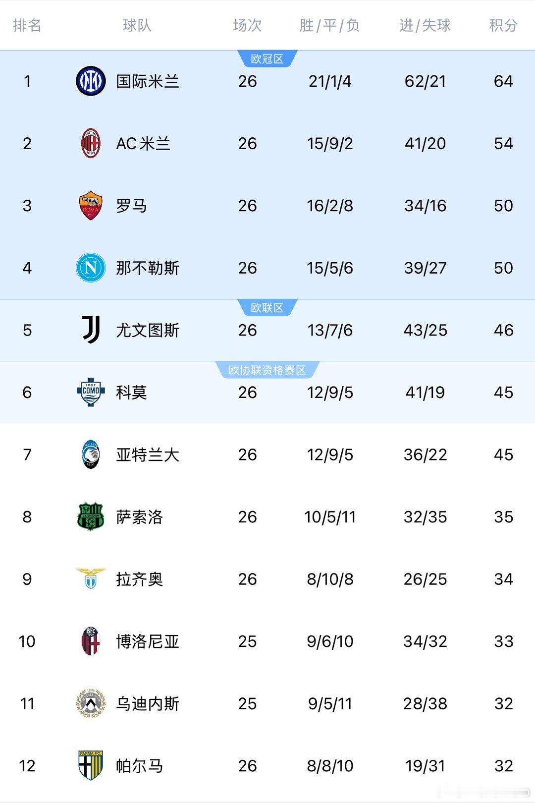 一觉醒来,米兰争议角球意外主场输给了帕尔马结束超长不败,这下联赛冠军基本上国米稳了。争四格局又添新的变数,真蓝黑战胜那不勒斯后迫近和你妇的积分差距,罗马战胜克雷默内塞后拉大了差距,下一轮真六分战。