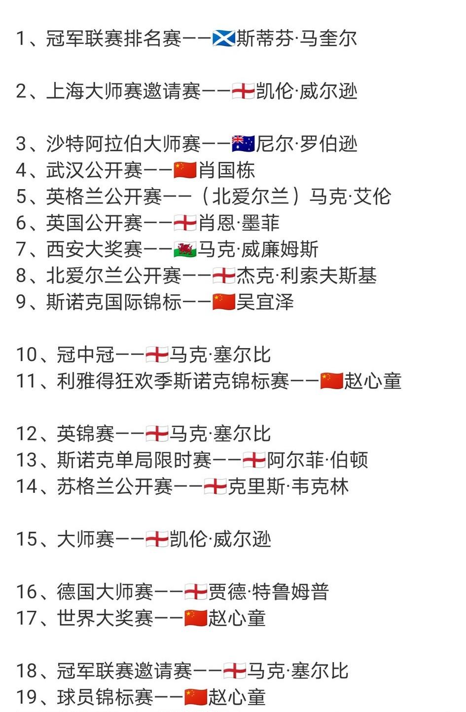 2025/26赛季已经结束的14站排名赛及5站邀请赛冠军所在国家分布: 英格兰:10个(7位) 中国:5个(3位) 苏格兰:1 个 澳大利亚:1个 北爱尔兰:1个 威尔士:1个