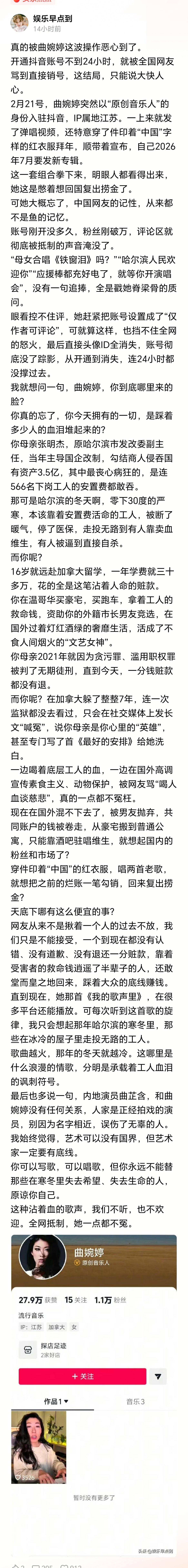 下一步,曲婉婷要斥巨资买水军洗地了,大纲都想好了,妈妈做错事,孩子是无辜的曲婉婷帐号没了