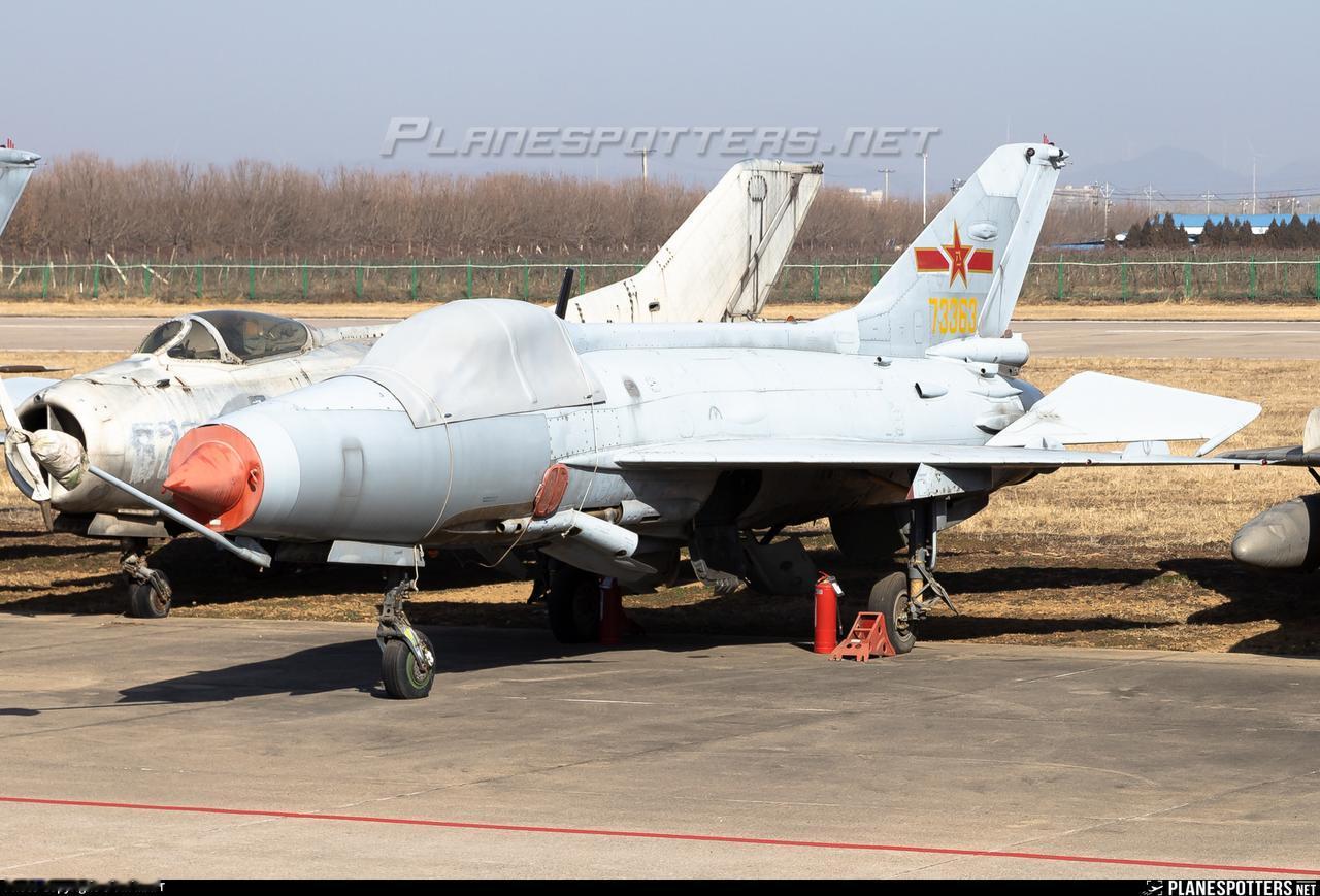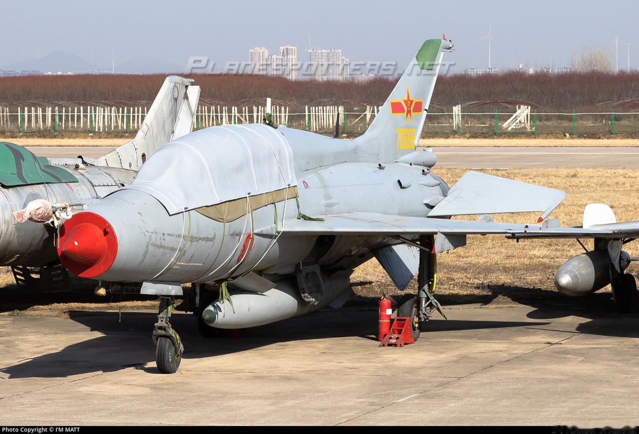 机场场坪的一角,扎堆摆放着一些老飞机,当年的主力装备,现在新老迭代,装备更新,前浪被后浪打倒在沙滩上。歼七Ⅱ旁边是一架更老的,彻底报废的歼六,现在只能等待拆解成金属回炉了。其实这些歼六、歼七,可以大量处理给城市公园、教育培训基地,让孩子们有亲手触摸战斗机的机会。