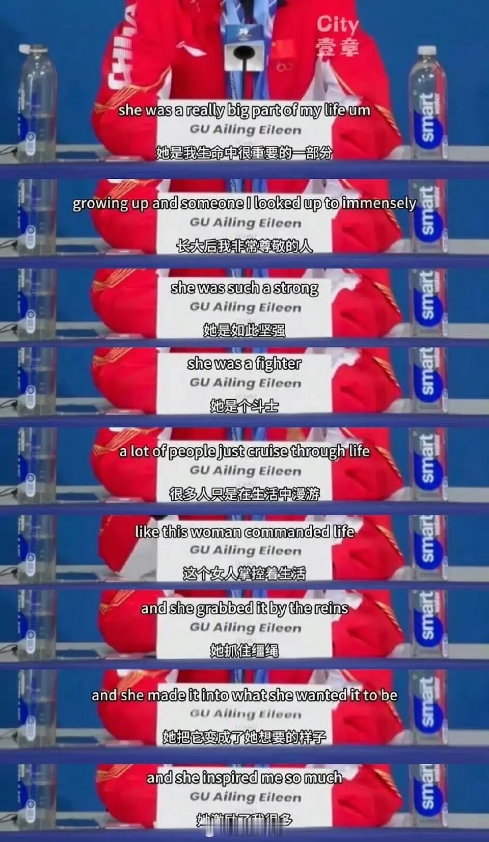 谷爱凌赛后得知奶奶去世了(是妈妈的妈妈)其实谷爱凌的全名是Gu Feng Eileen,feng就是奶奶的姓氏