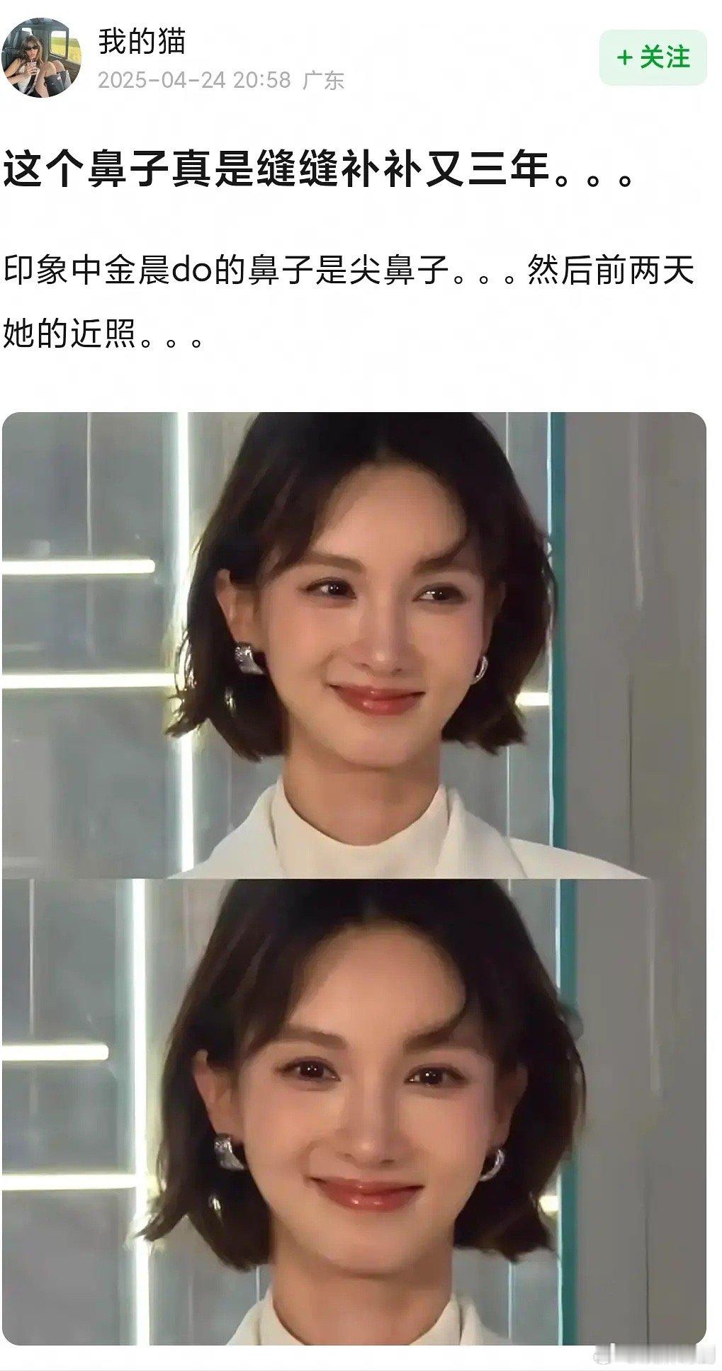 原来金晨的鼻子3月被撞,4月5月都有人发现不一样了