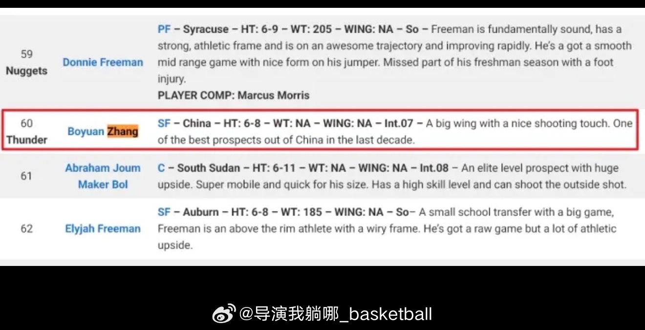 模拟选秀网站NBA Draft Room刚刚更新了2027年选秀预测,中国球员张博源被预测在60顺位被选中,这是他首次进入主流NBA模拟选秀网站的榜单中