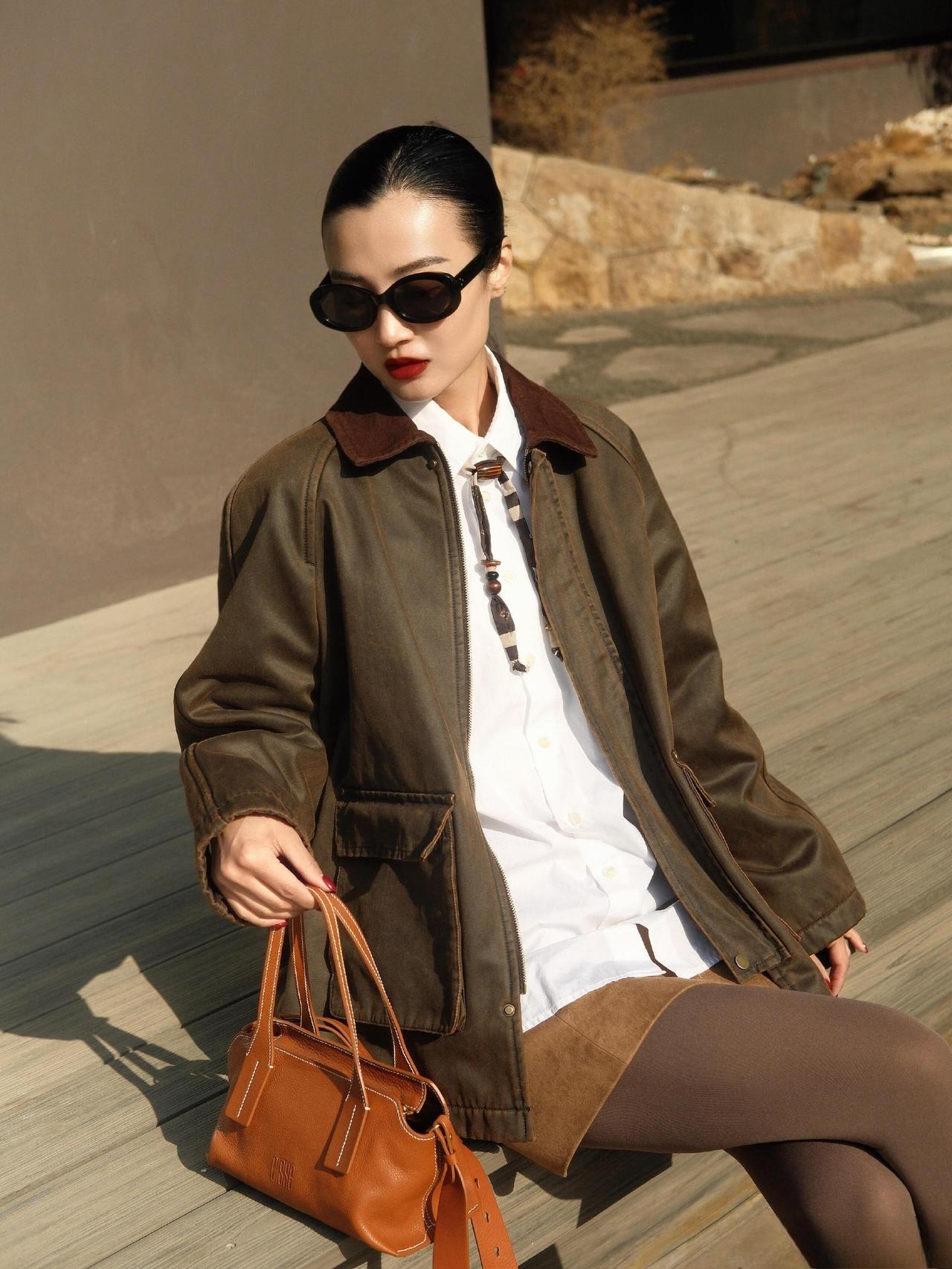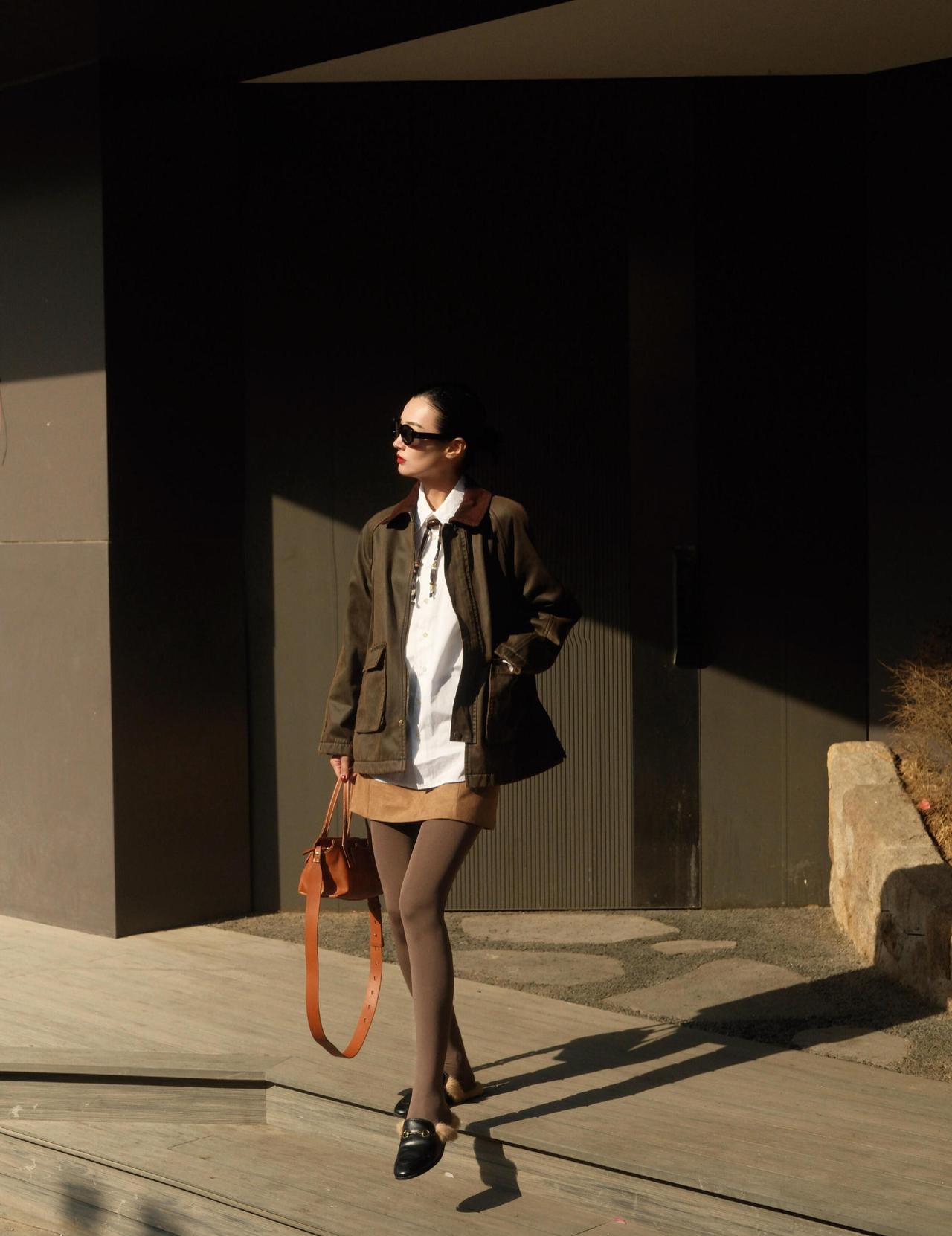 军绿外套自带随性气场,白衬衫+棕裙的叠穿添了利落质感,同色系袜子和毛毛鞋平衡了酷感,是高级又耐看的日常出街风。军绿色上衣搭配 有气质的穿搭是怎么样的
