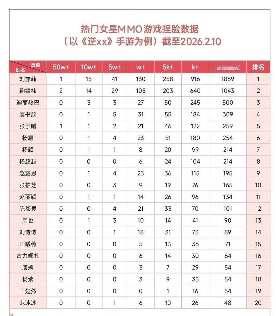 热门女星MMO游戏捏脸数据