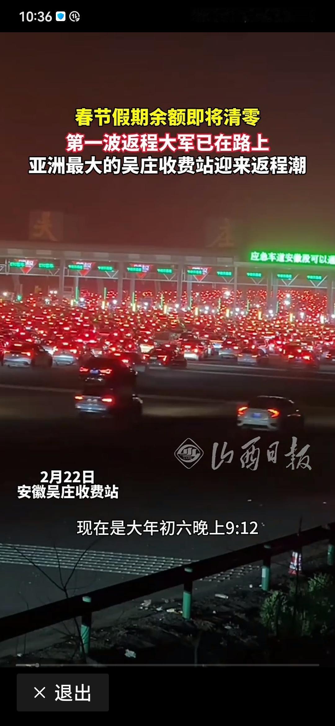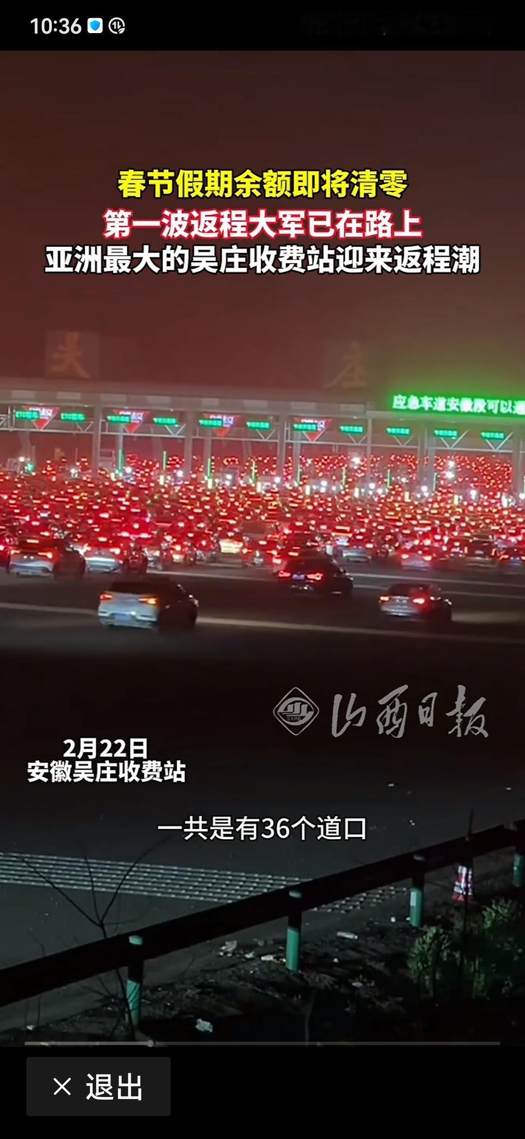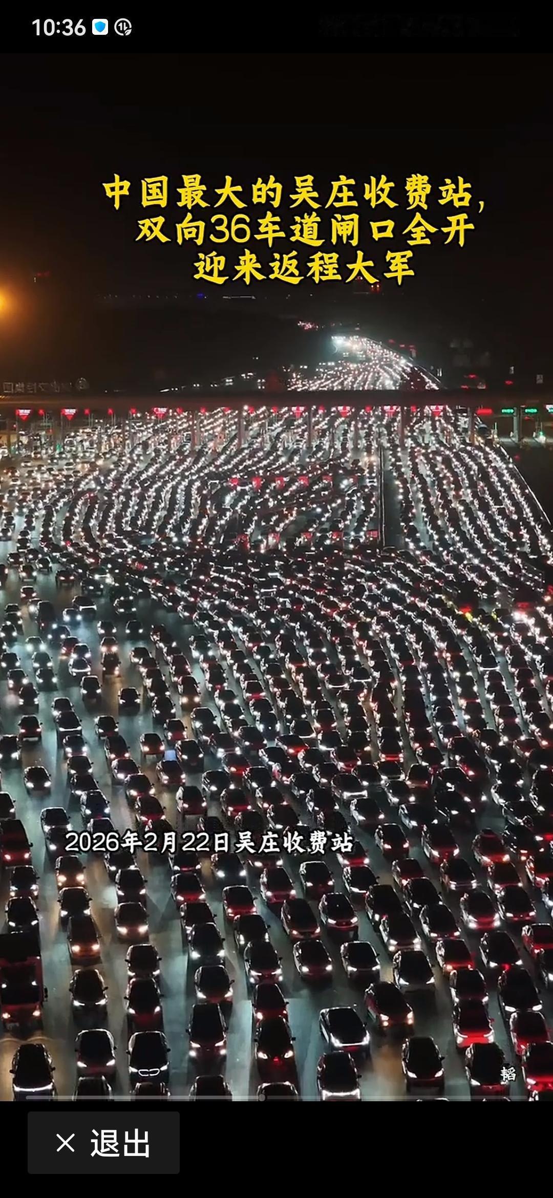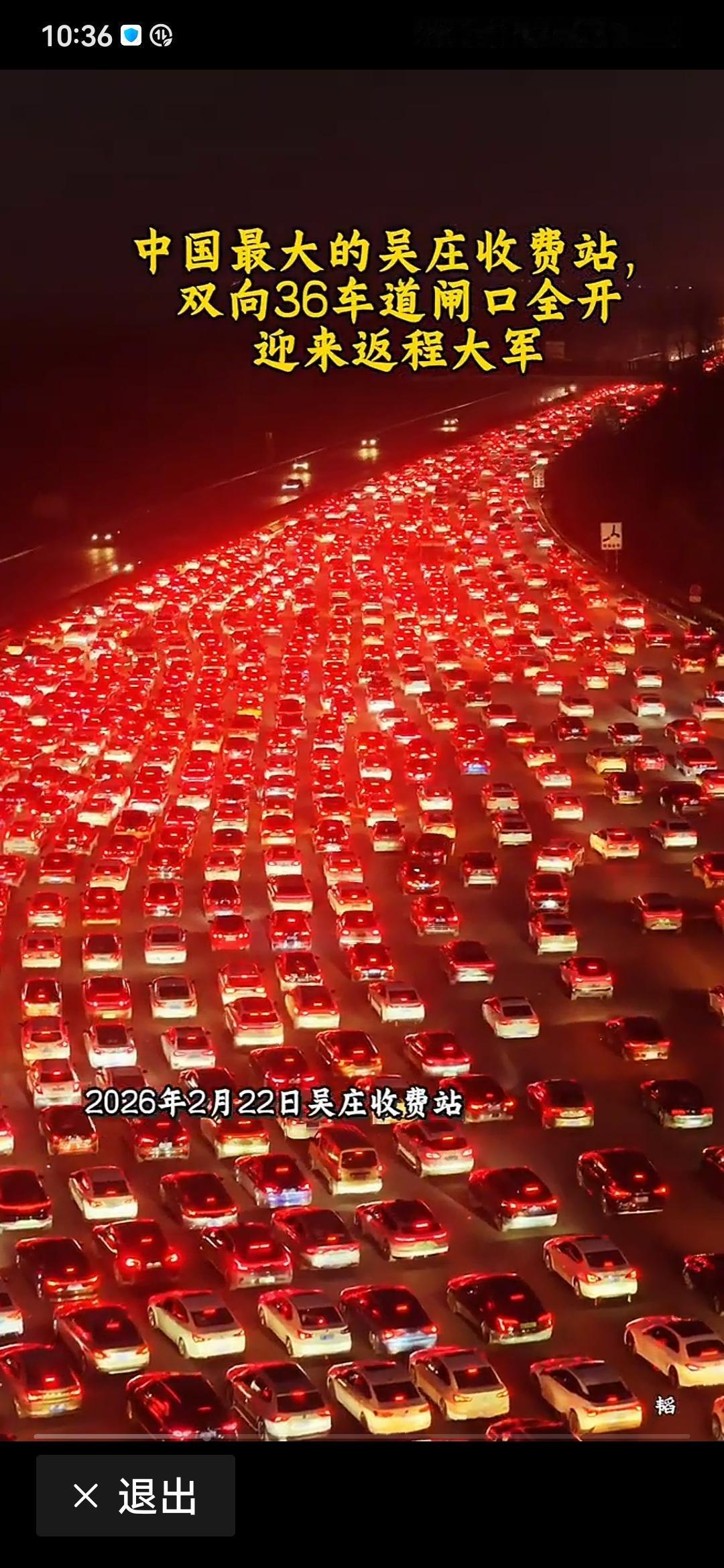 看着这堵车的场面,号称亚洲最大收费站,36车道全开,也奈何不得。这也是过年一番景致吧?