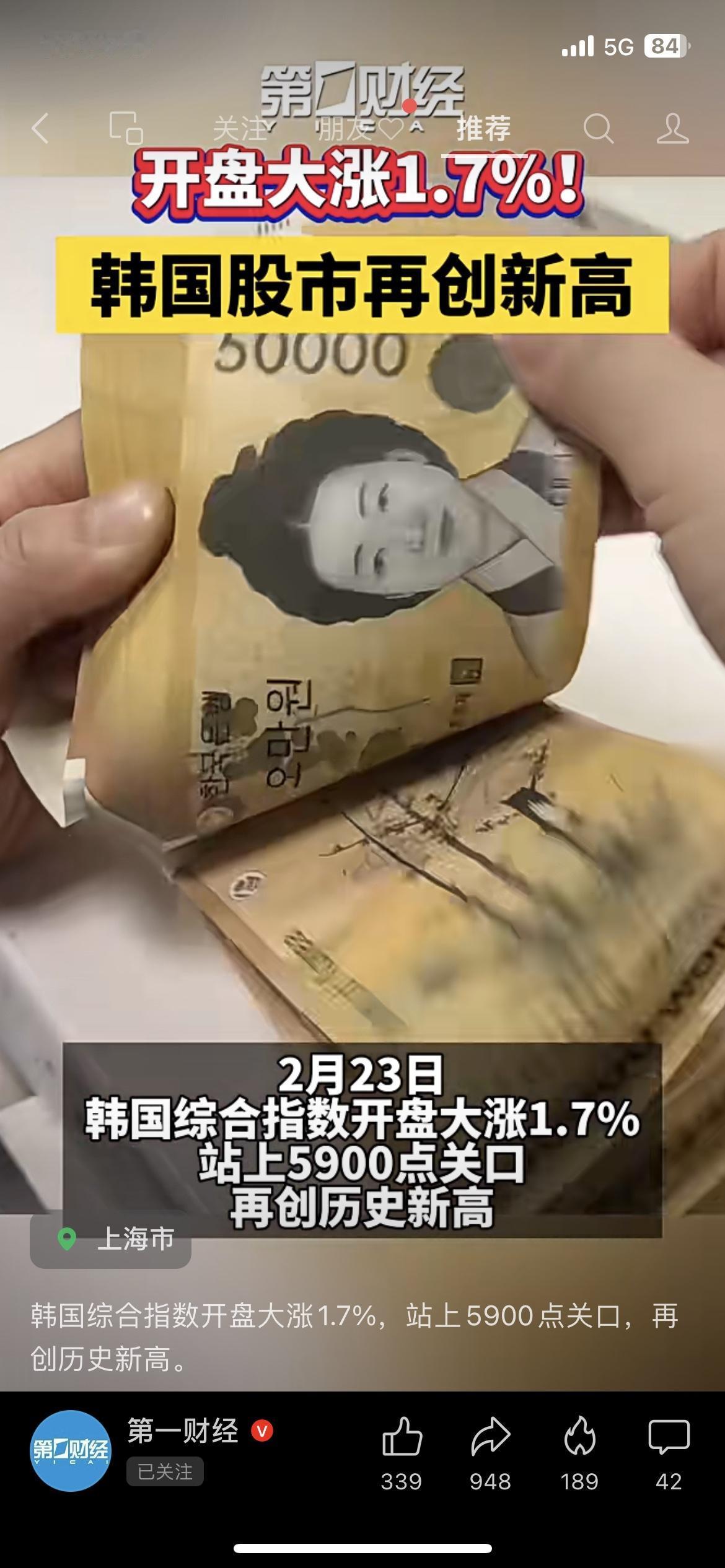 刚刷到消息,韩国综合指数再度创出历史新高,盘中直接站上5900点,开盘就大涨近2%,整个市场情绪特别高涨。 我同事看到这行情都在感慨,怎么国外股市一路走高,不少人都动了想跟风的心思。 其实这波上涨主要是科技板块带动,叠加外资持续流入,押注行业景气度。但咱普通人要明白,海外市场有汇率、地缘等多重风险,波动也很大,看不懂的领域千万别盲目进场。 赚钱的前提是先守住风险,别看着热闹就往里冲,稳定比短期刺激更重要。 市场有风险,投资需谨慎,本文不构成任何投资建议。 韩国股市 理财