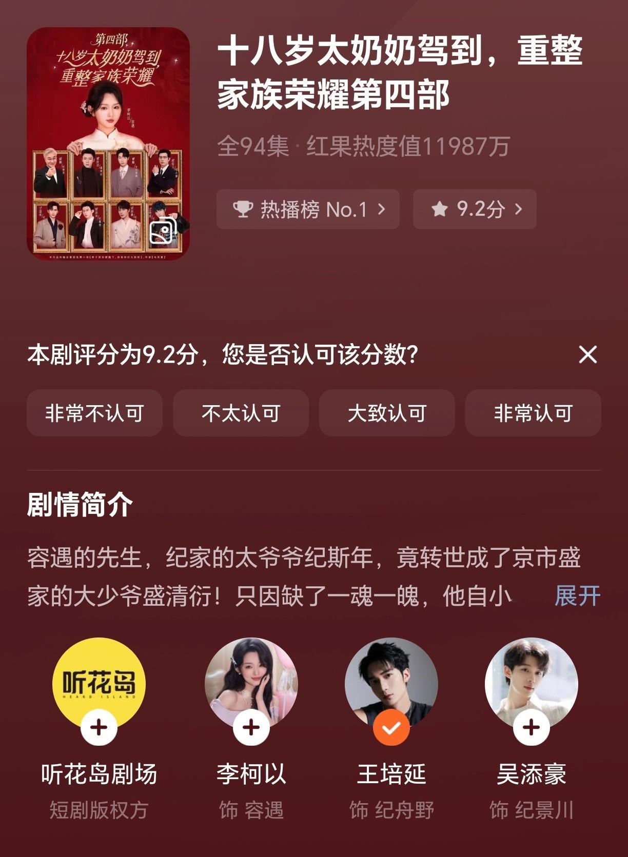 春节期间可看可不看的短剧系列:《昼以继夜》这种群像剧在短剧太有市场了,剧情简介就是浓缩了《欢乐颂》和《三十而已》的精华,优点是短剧的霸总就是比长剧的好,不会出现王柏川;《穿成假冒失忆大佬女友的恶毒女配》是张晋宜和李卓扬二搭剧,剧情难懂,但他俩的cp感真的很强;《爱久同心》第一次看王译磊和翟一莹搭剧,红果民国剧自从有了《暗潮涌动》,其他同类剧都显得普通;《听银》女帝登基巨女主,至春禾萌脸霸气反差感很强,缺点也很明显,男女主很重要的情感递进部分改成了女主帮助其他人,非常没必要,男二这个角色变成疯批强制爱更没什么存在的必要,男二没掀桌完全是男主是一航;《雪落时逢你》和《知京东风雪》证明王格格百搭演技好,前者酸涩拉扯但不够,后者可以证明男主非常爱女主的地方竟然是喝醉住院好大一逻辑bug;《爱我万岁》都市大女主剧,韩雨彤和这个角色适配度非常高,听花岛愿意拍这类剧情也非常好,上海女子图鉴,就是剧本不太扎实且太过于强调36岁,特别是前夫哥洗白的部分看得人头痛。时康在这里演年下不出戏;《十八岁太奶驾到》的剧情水到了第五季,但每次上还是会看,看完又觉得浪费时间,其实是觉得这几位演员很好玩儿。