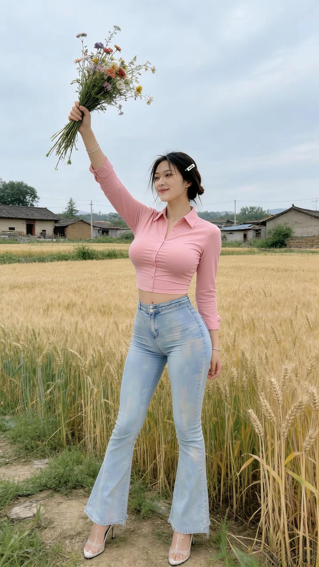 金穗映笑颜,花束送芳心。
