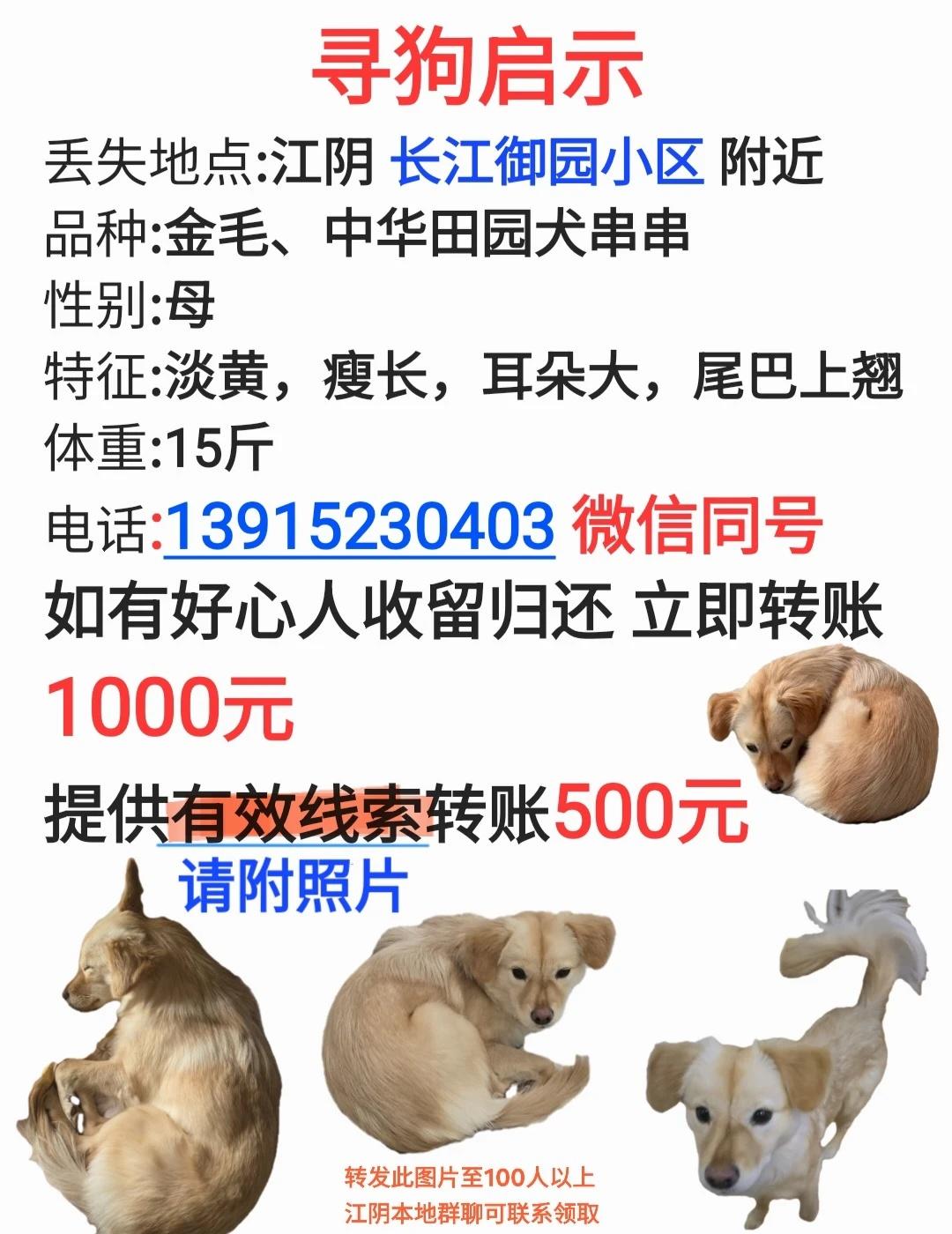 江阴人:别叫无锡江阴谢谢 标题党致歉[流泪] 有人在江阴看到淡黄色小狗狗了吗? 可联系 见图2 狗狗找回不问之前的去处 不问如何遇到 江阴 无锡 江阴备婚 江阴婚礼 江阴美食