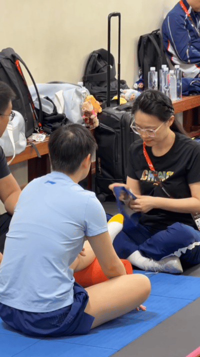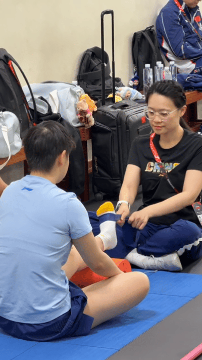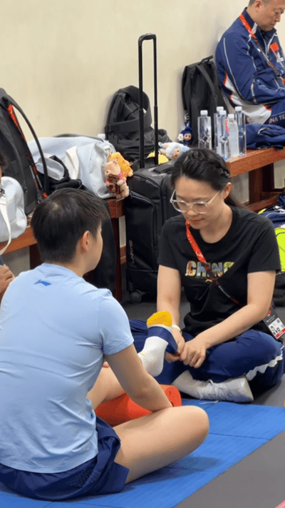 莎莎开始热身,穿了lulu的拖鞋,这个小脚丫也就36的吧。 莎莎已经在训练场开始训练,队医小姐姐在协助她, 莎莎今天上训穿的是拖鞋,右侧大腿旁有一点淤青,训练的时候一定要注意啊,安全健康第一。 坐在垫子上,拉伸脚步的时候,莎莎这不同颜色的小袜子也是很可爱的,脚丫也很小。 晚上的比赛加油哦。