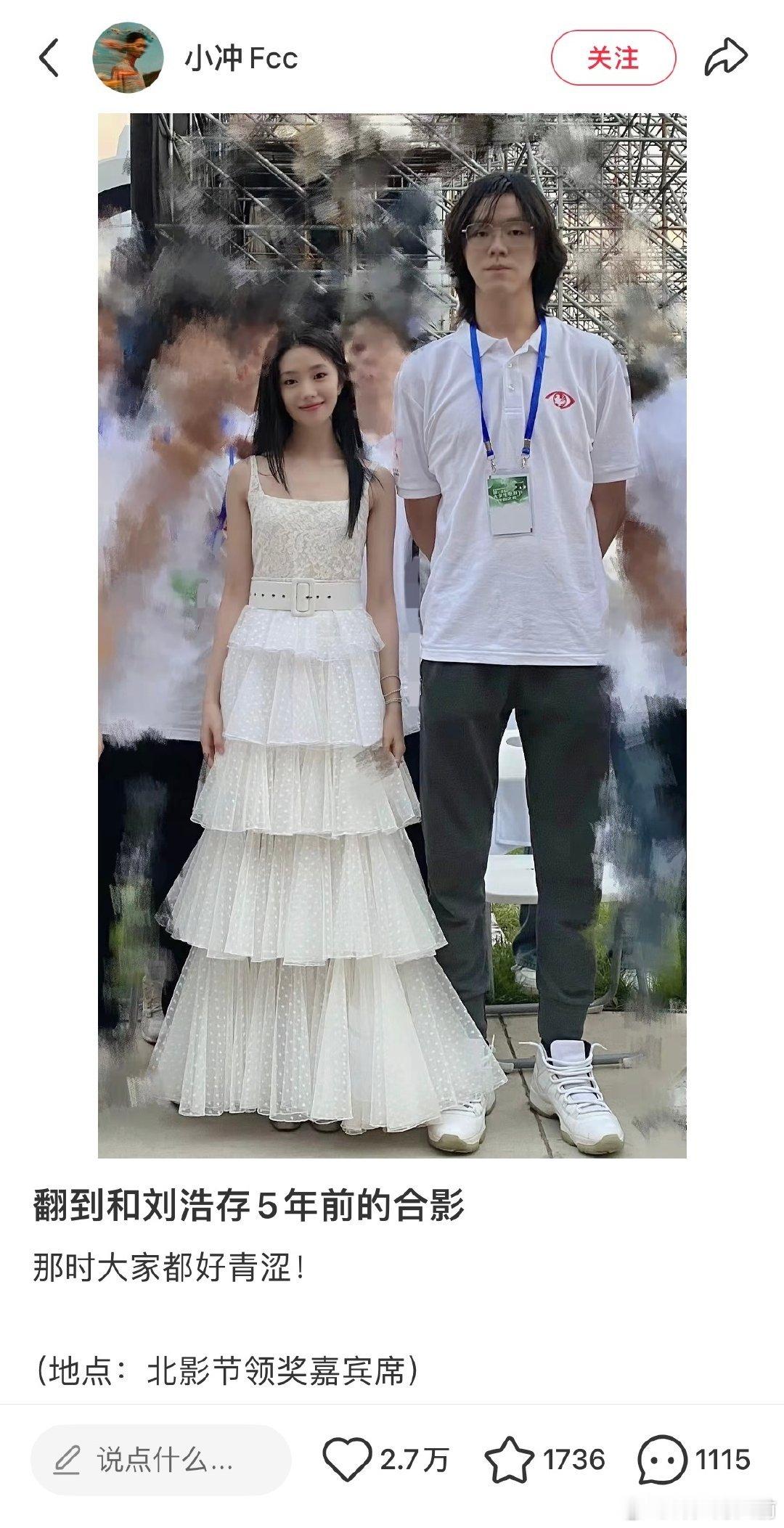 网友翻到和刘浩存5年前的合影,往那儿一站像朵小茉莉花,好有灵气