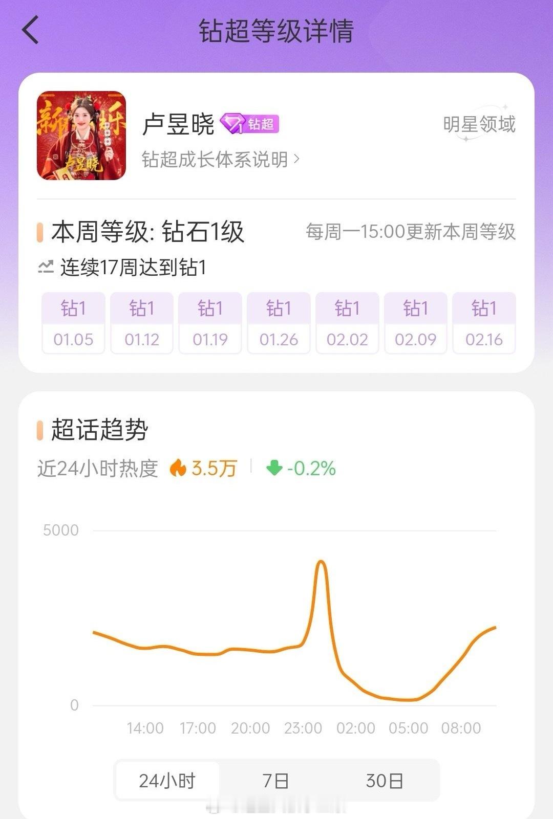 卢昱晓超like突破9000➕,钻超连续17周🔥
