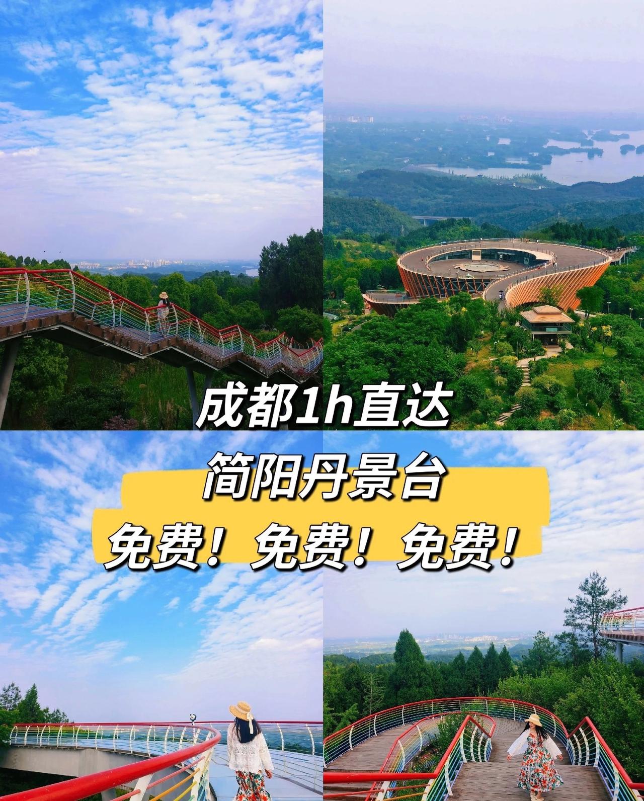 成都1h直达,简阳丹景台,超适合小白徒步简阳 📍成都 📍成都1h直达,简阳丹景台,超适合小白徒步! 🌿简阳龙泉山丹景台一定要去,景区免费!景美人少,宠物友好,特别适合周末1日游。这里非常适合带小孩和徒步小白,登上山顶远眺三岔湖,呼吸新鲜空气,太惬意啦! ✨景区三大必打卡景点推荐: 1️⃣ 丹景台:360度云端观景台,登顶可将三岔湖美景尽收眼底,天气晴朗时还能清晰望见天府机场的飞飞机起降,视野极为开阔。 2️⃣ 丹景阁(自选项目$10):塔顶是拍摄观景台全景的绝佳机位,如图2所示,登塔后能将整个景区风貌一览无遗,特别推荐摄影爱好者前往,每一帧都值得珍藏。 3️⃣ 玻璃栈道(自选项目⑧5):这段彩虹伊玻璃栈道虽然不长,但体验感十足,脚下即是壮丽景色,特别适合喜欢刺激的游客,站在上面随手一拍都是大片,恐高的朋友请量力而行哦~ 🚗交通指南: 推荐自驾:导航成都东门出发50分钟即到,停车场在景区内。 ➡️游览路线: 东门进→游览完主要景点→东门出。 💡出行攻略: 推荐自驾:直接导航至【龙泉山城市森林公园丹景台东门】,从成都市区出发约1h可达,景区内设有专用停车场,停车便捷。 推荐路线:建议从东门进入,游览核心景点后原路返回东门取车。 城市生活地图 大众严选出片点 观景台