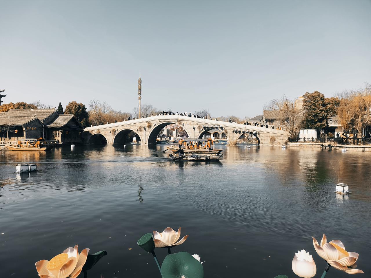 又去台儿庄。被好友笑话了一顿,说怎么又跑去台儿庄呀? 我说景点还不错,关键是花钱少。这是附近门票比较适合大众的一个景点,临沂人去台儿庄古城,门票只有40元。再加上我们走高速免费,太亲民的一个景点。 去到之后才了解一个更亲民的价格,就是18岁以下免票。买票的时候,售票员反复的提醒是不是临沂人或徐州人?有没有孩子和老人?没带身份证,驾驶证或者是电子照片都可以。 有人气才能拉动经济。我们到了东北停车场居然停得满满的。大街小巷都可以停车,我们考虑再三还是找了一家私人停车场,非常大的一个停车场。 我们中午12点赶到,到了下午特别是两三点钟的时候,人特别多。很多人是来看夜景的,他们说夜景比白天更漂亮,灯光绚丽多彩。 气温适合的是日子里,走在古城的街道上,真如梦幻般的感觉。我喜欢这样的场景,喜欢这样热闹的地方,喜欢这样人间烟火气。 找了一个店,忘记拍一拍饭店的名字。点了一盘鱼和一盘香菇,油菜,两碗米和两块菜煎饼。 爱人说菜有些咸,太咸了。 我说味道还不错。心情好,所遇到的一切都是好的。旅游台儿庄古城