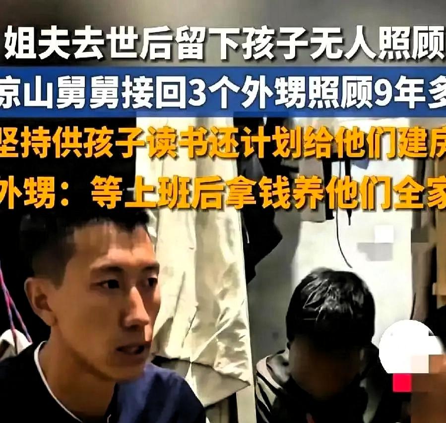 四川凉山那件事,真是把人性的底线给戳穿了 姐姐姐夫不幸离世,留下三个年幼的孩子。本该互相扶持的亲人,却做出了让人寒心的选择。亲姑姑将孩子们仅有的房子变卖后离开,三个孩子一下子没了依靠,连落脚的地方都没有。 在所有人都犹豫、退缩的时候,当时只有20岁的舅舅,站了出来。他自己生活本就拮据,连养活自己都不算轻松,可看着无依无靠的外甥们,还是默默把三个孩子带回了家。 身边不少人劝他,年纪轻轻带着三个孩子,日子会很难,未来的生活也会被拖累。但他没有退缩,选择扛起这份责任。 后来,他遇到了一位善良踏实的伴侣,也就是孩子们的舅妈。她进门后没有抱怨,而是用心照顾孩子们的生活,帮他们打理衣食起居,用耐心和温柔撑起了这个原本破碎的家。 没有惊天动地的举动,只有日复一日的坚守。夫妻俩踏实过日子,再辛苦也没有放弃过孩子。十年过去,三个孩子在照顾下健康长大,懂事又上进,家里的墙上贴满了奖状,用努力回报着这份养育之恩。 这件事让人明白,亲情从来不是只靠血缘维系。 有些有着亲属关系的人,遇事只考虑自己,冷漠又现实;而有些人,凭着良心和责任,在最难的时候选择伸手,在最苦的时候选择坚守,把苦日子过成了有温度的生活。 真正的亲人,不是在顺境里凑热闹,而是在困境中不撒手;不是嘴上的关心,而是实实在在的陪伴与担当。 生活最难得的,就是这份不掺私心的善良和不离不弃的情义。愿每一份真心都被善待,每一份担当都有回响。